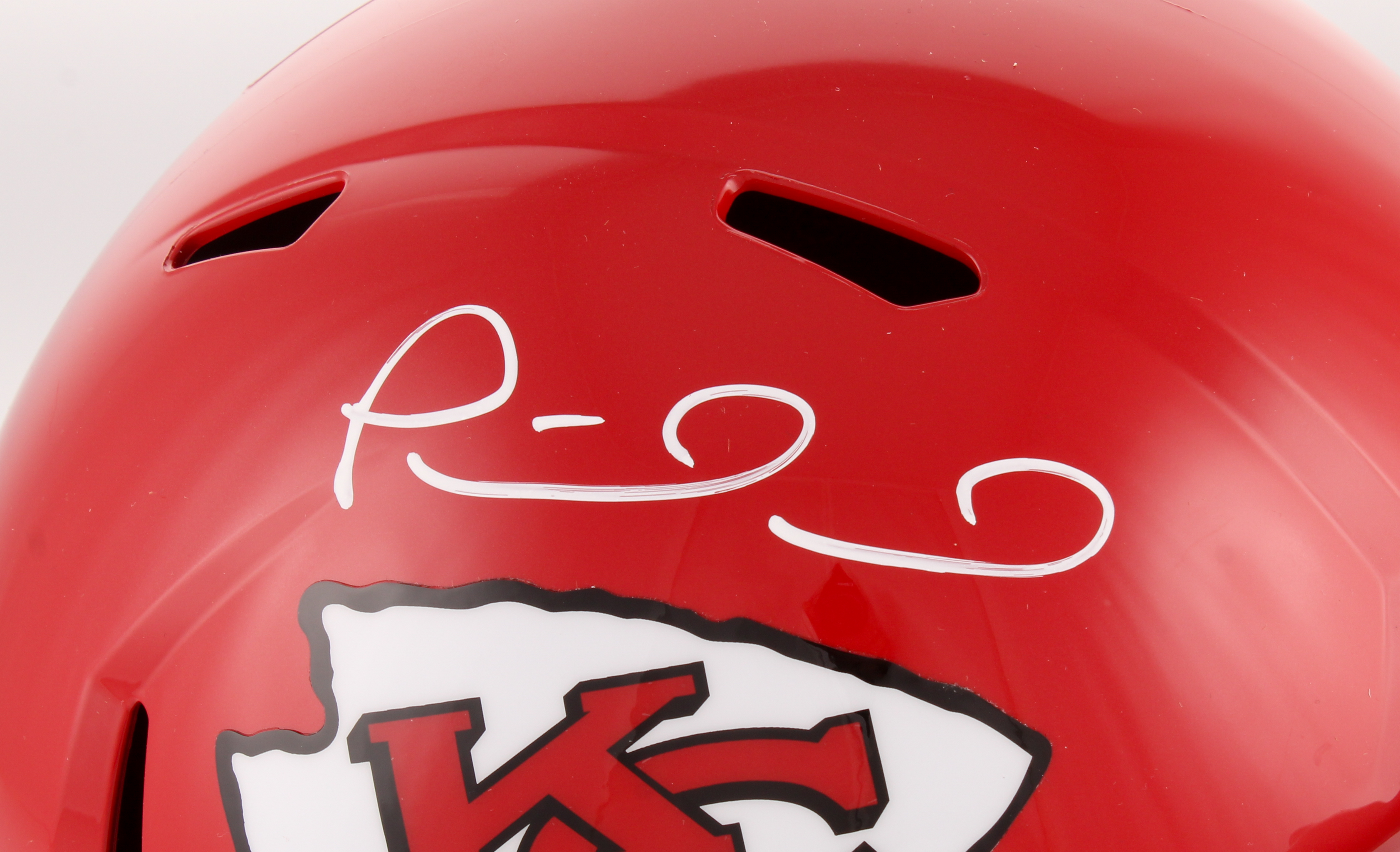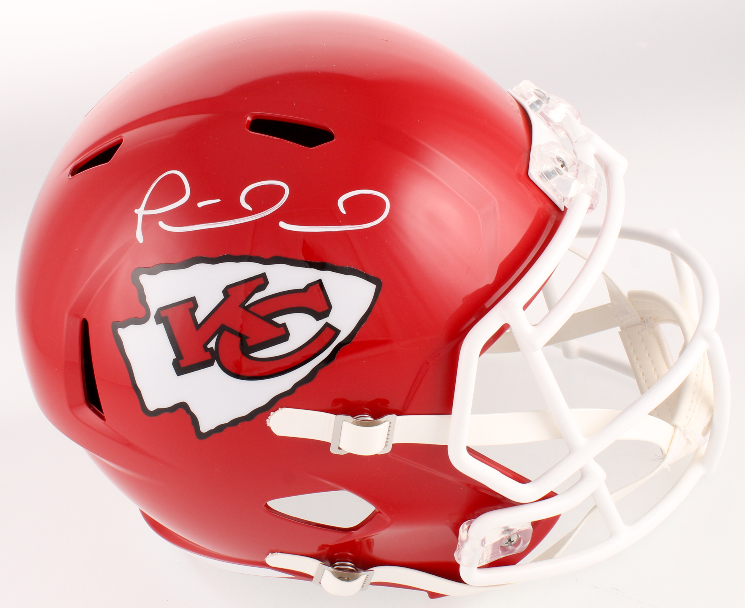 Riddell Kansas City Chiefs full-size replica speed helmet. Hand-signed in white paint pen by Patrick Mahomes. (Kansas City Chiefs)
