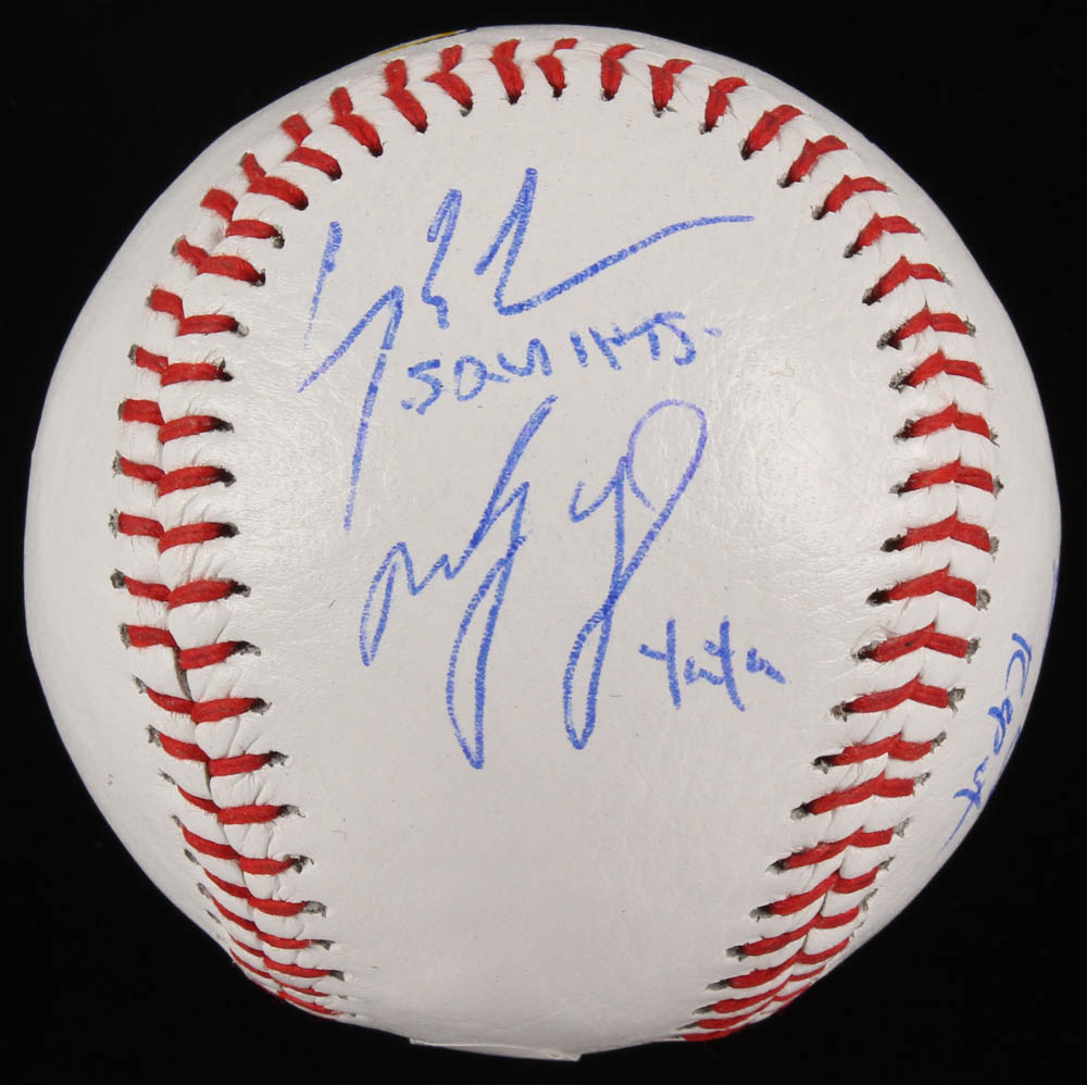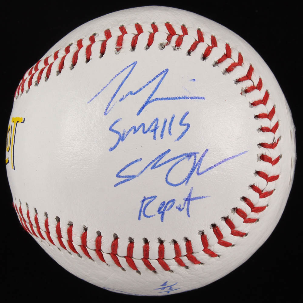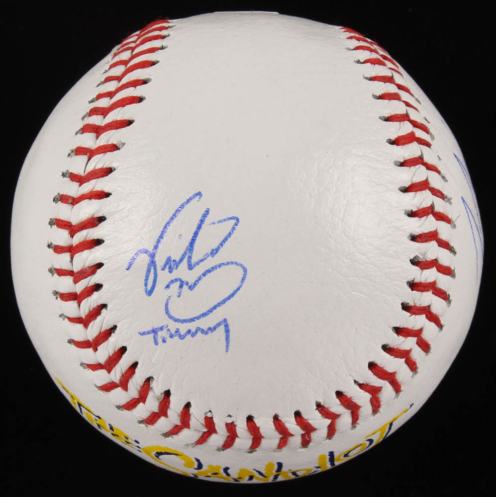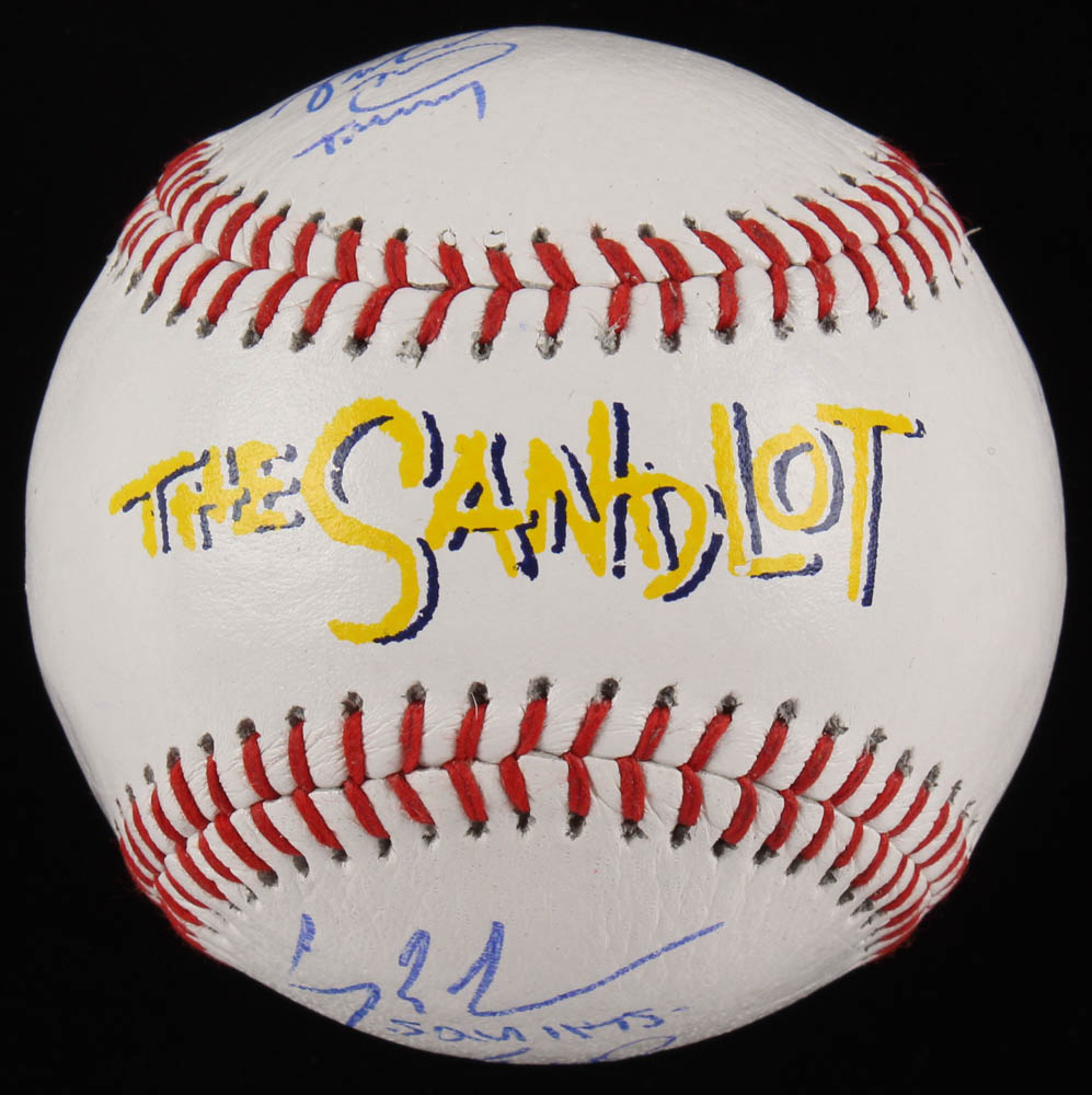 "The Sandlot" Logo Baseball. Hand-signed in blue ink pen by (5) including Tom Guiry (Scotty Smalls), Chauncey Leopardi (Michael "Squints" Palledorous), Marty York (Alan "Yeah-Yeah" McClennan), Victor Di Mattia (Timmy Timmons) and Shane Obedzinski (Tommy "Repeat" Timmons).