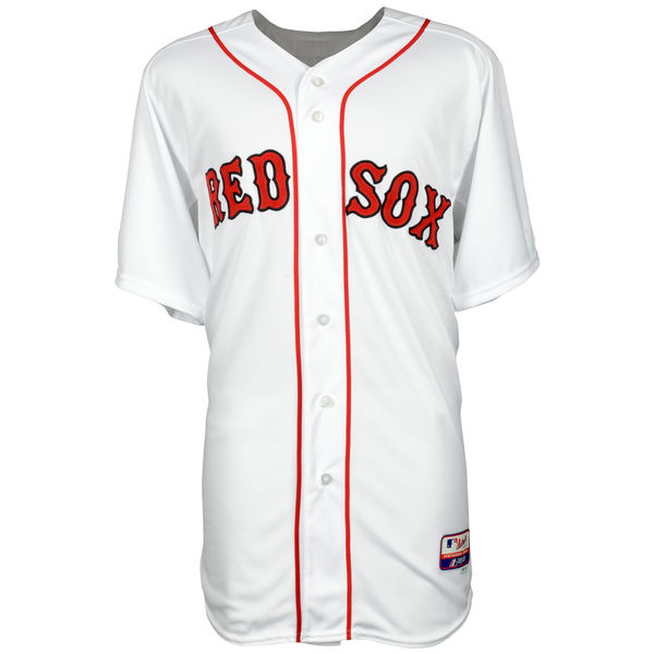 Majestic on-field style jersey. Everything is sewn on, size 48. The jersey has been hand-signed in silver paint pen by Mookie Betts (Boston Red Sox).