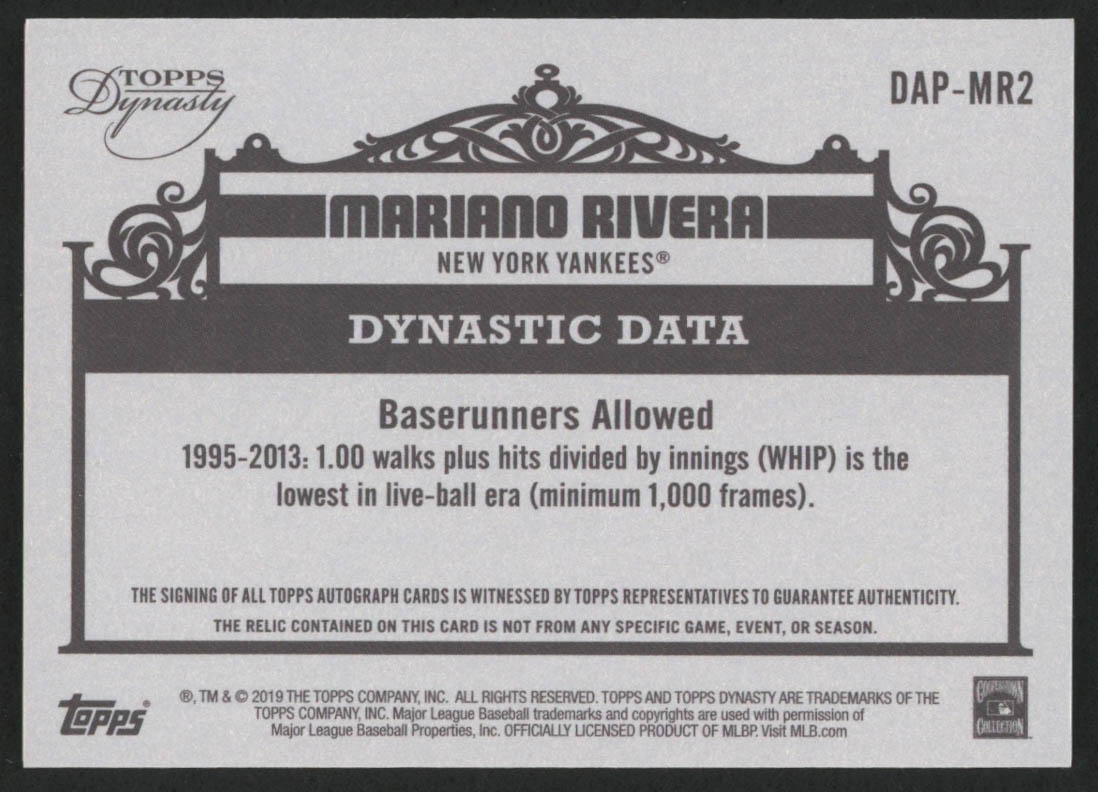 Mariano Rivera 2019 Topps Dynasty Autograph Patches #APMR2