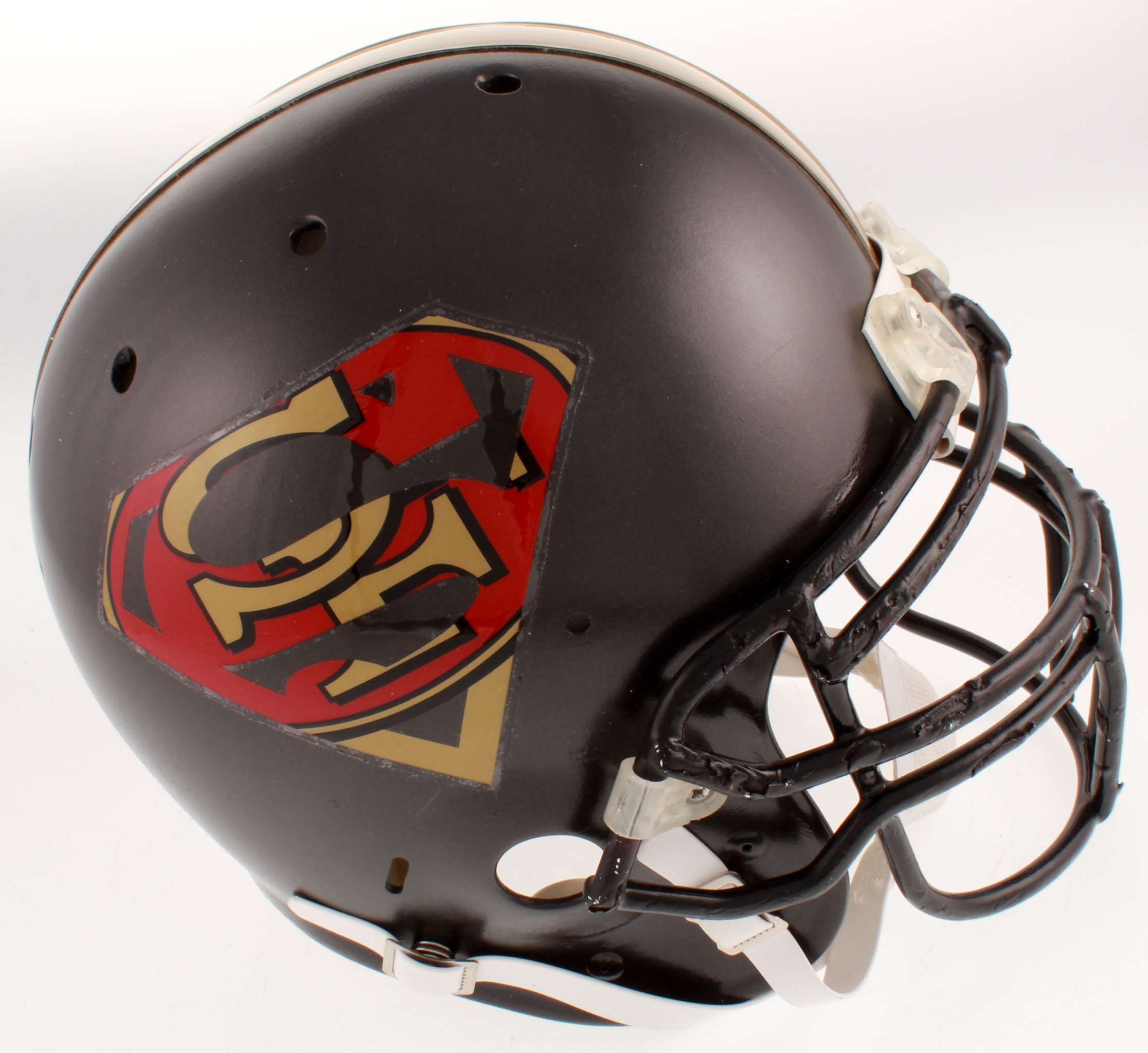 San Francisco 49ers Full-Size Authentic On-Field helmet. Please note, the helmet is not signed. Please see images for details regarding the condition of the helmet.