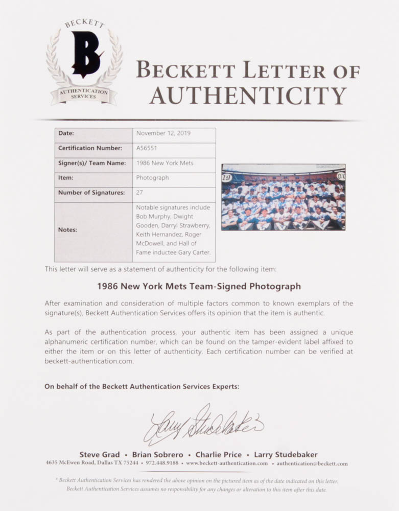 1986 New York Mets 15x20 Photo Signed by (27) with Bob Murphy, Dwight Gooden, Darryl Strawberry, Keith Hernandez, Roger McDowell, Gary Carter (Beckett LOA)