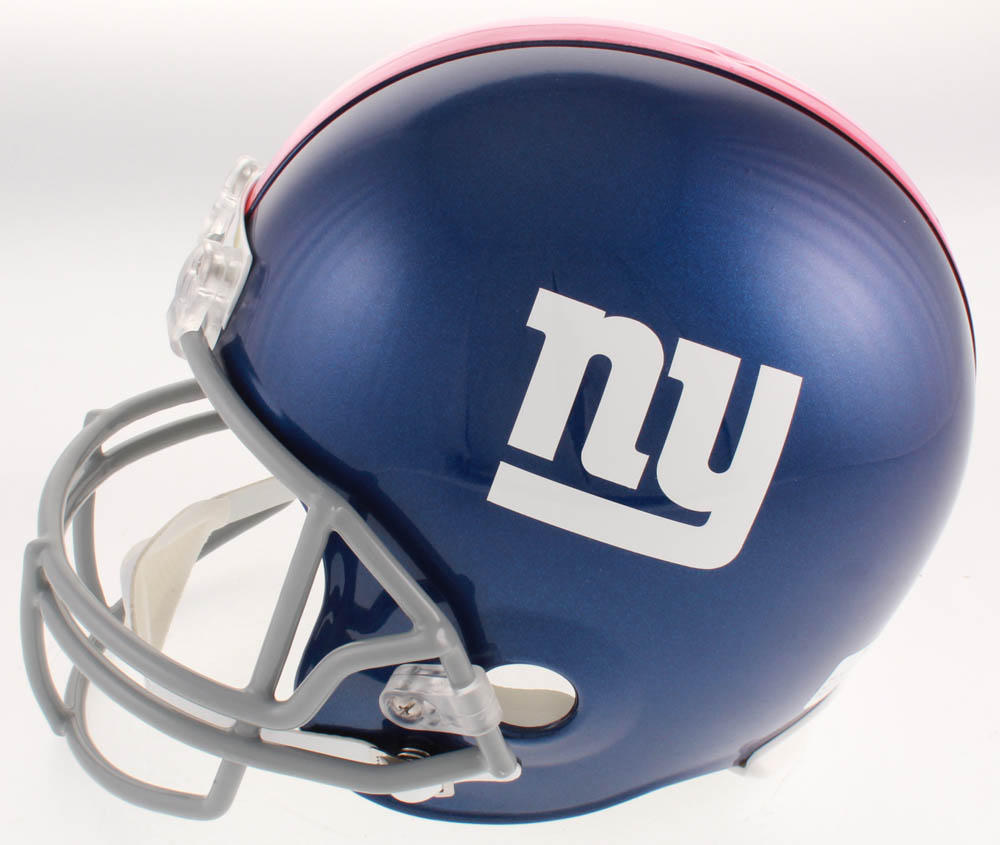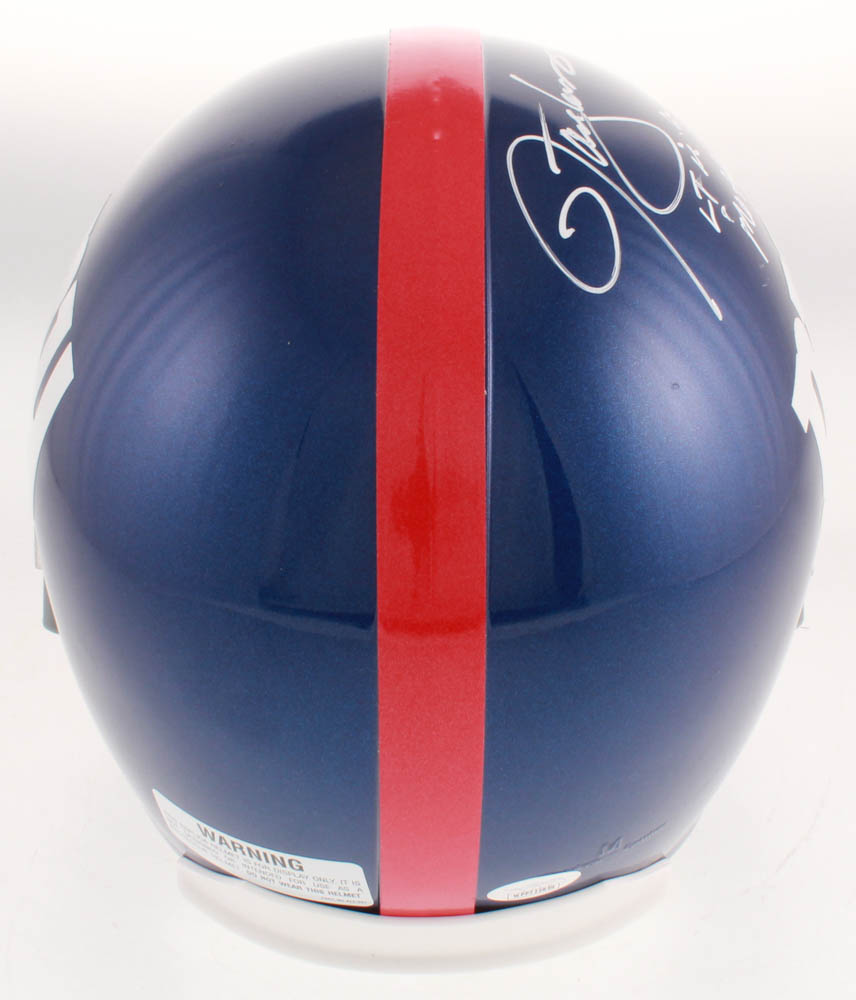 Riddell New York Giants full-size replica helmet. Hand-signed and inscribed in silver paint pen by Lawrence Taylor (HOF). Please see images for details regarding the condition of the helmet.