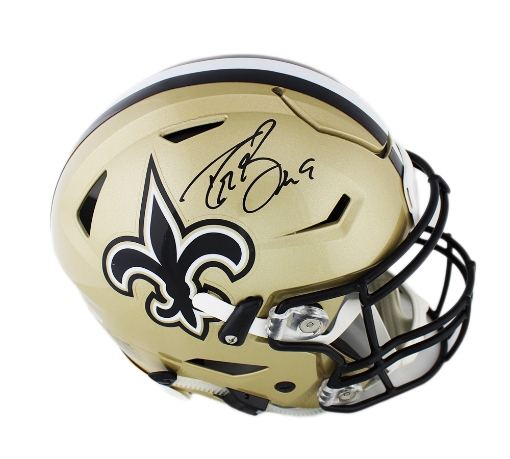 Riddell New Orleans Saints full-size authentic on-field SpeedFlex helmet. Hand-signed in black felt-tip pen by Drew Brees.