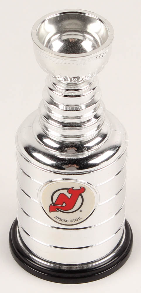 New Jersey Devils Stanley Cup mini replica trophy measures approximately 4.25" tall. Please note, the replica trophy is not signed.