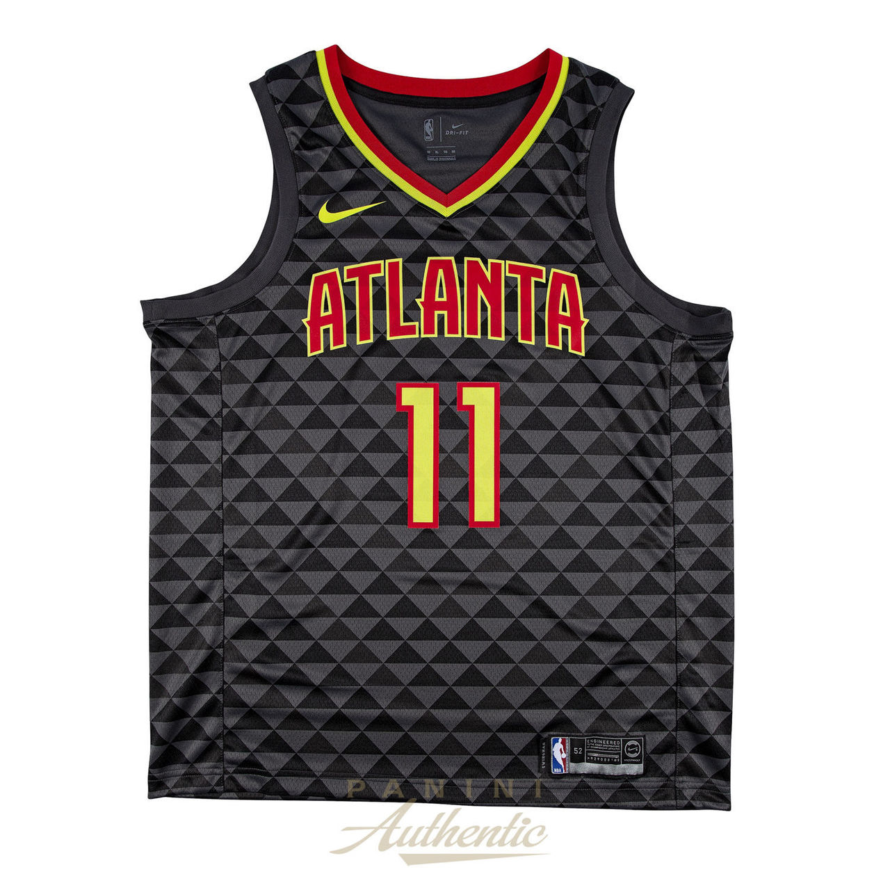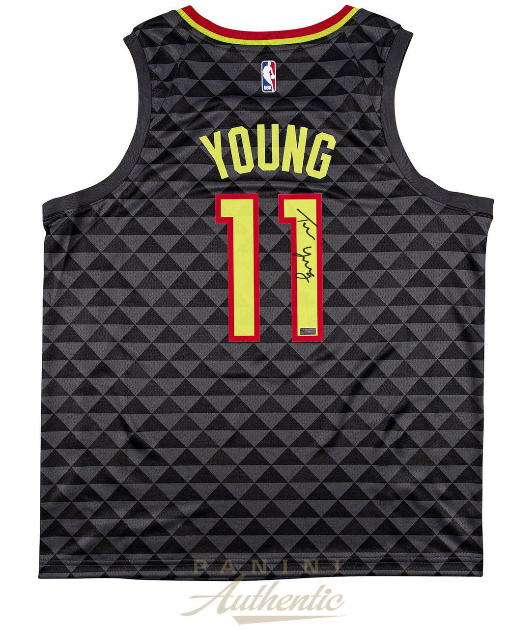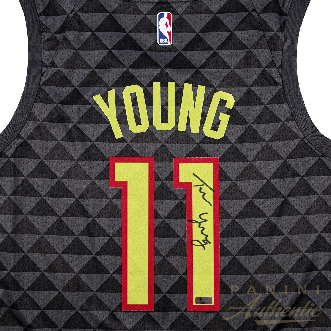 Nike on-court style swingman jersey. Everything is printed on, size 52. Hand-signed in black felt-tip pen by Trae Young (Atlanta Hawks).