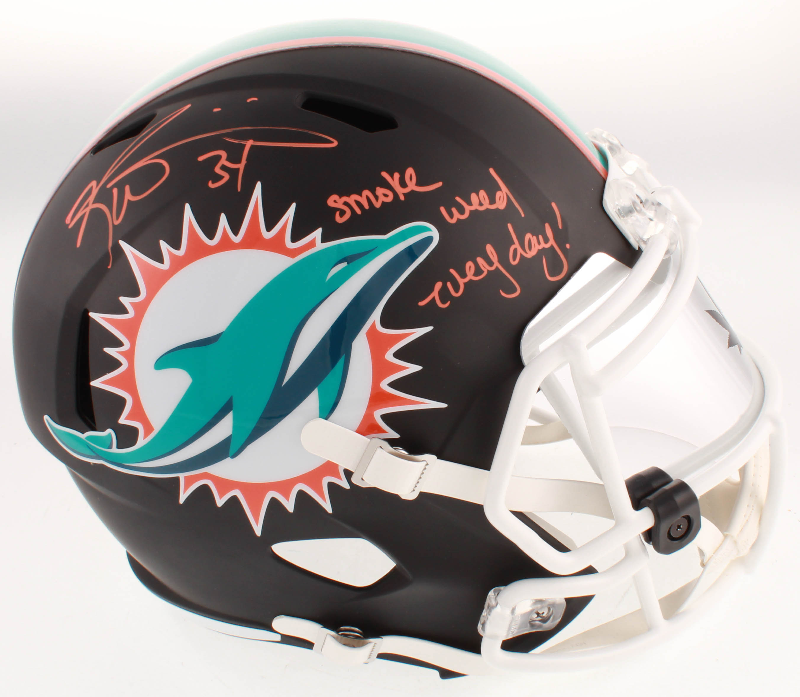 Ricky Williams Signed Dolphins Full-Size Matte Black Speed Helmet Inscribed with Mirrored Visor "Smoke Weed Everyday" (JSA COA)