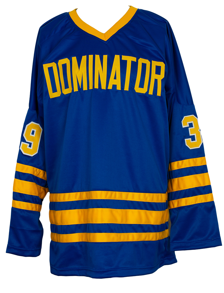 Custom on-ice style jersey. Everything is sewn on, size XL. Hand-signed and inscribed in black felt-tip pen by Dominik Hasek (HOF).