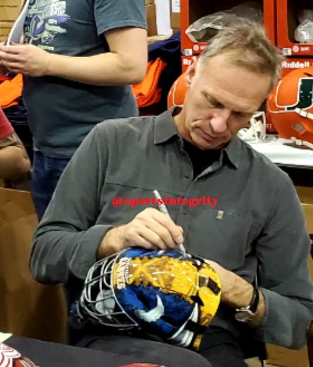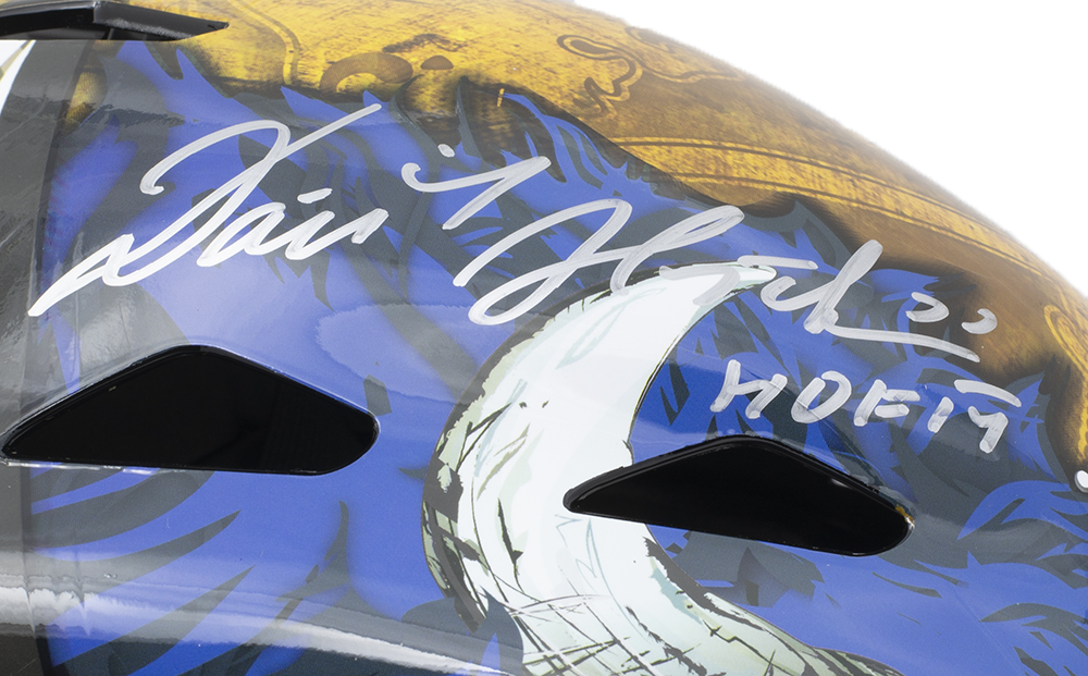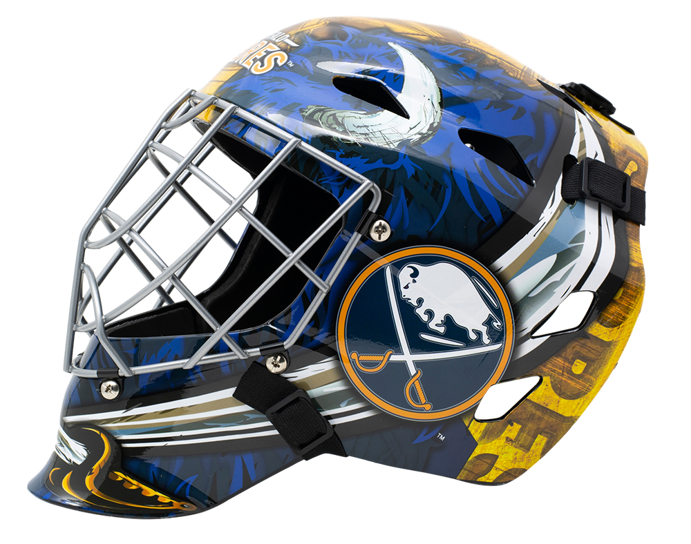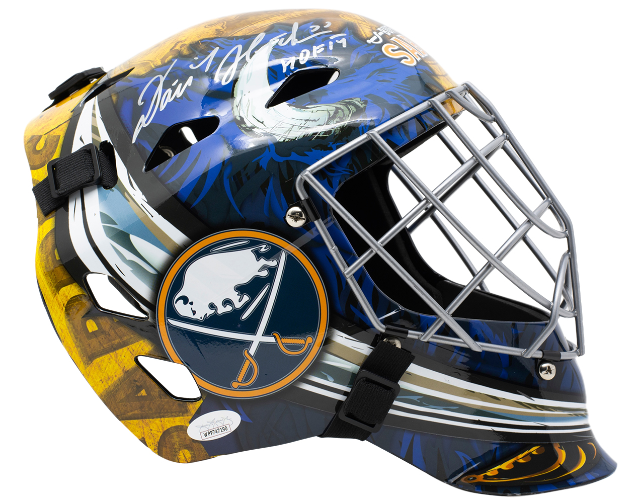 Buffalo Sabres full-size goalie mask. Has been hand-signed and inscribed in silver paint pen by Dominik Hasek (Buffalo Sabres, HOF).