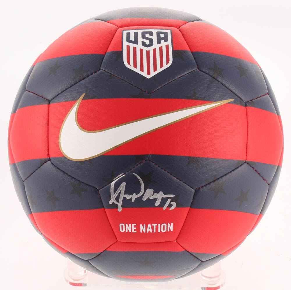 Nike Team USA soccer ball. Hand-signed in silver paint pen by Alex Morgan.