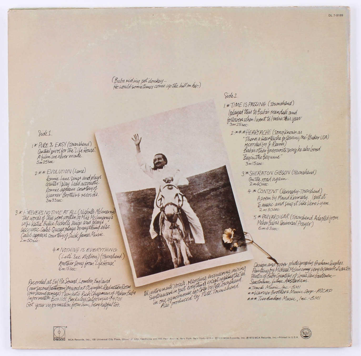Pete Townshend Signed "Who Came First" Vinyl Record Album (PSA COA)