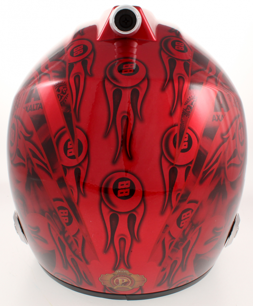 The helmet includes an official Dale Earnhardt Jr. hologram from Jr. Motorsports for authenticity purposes.