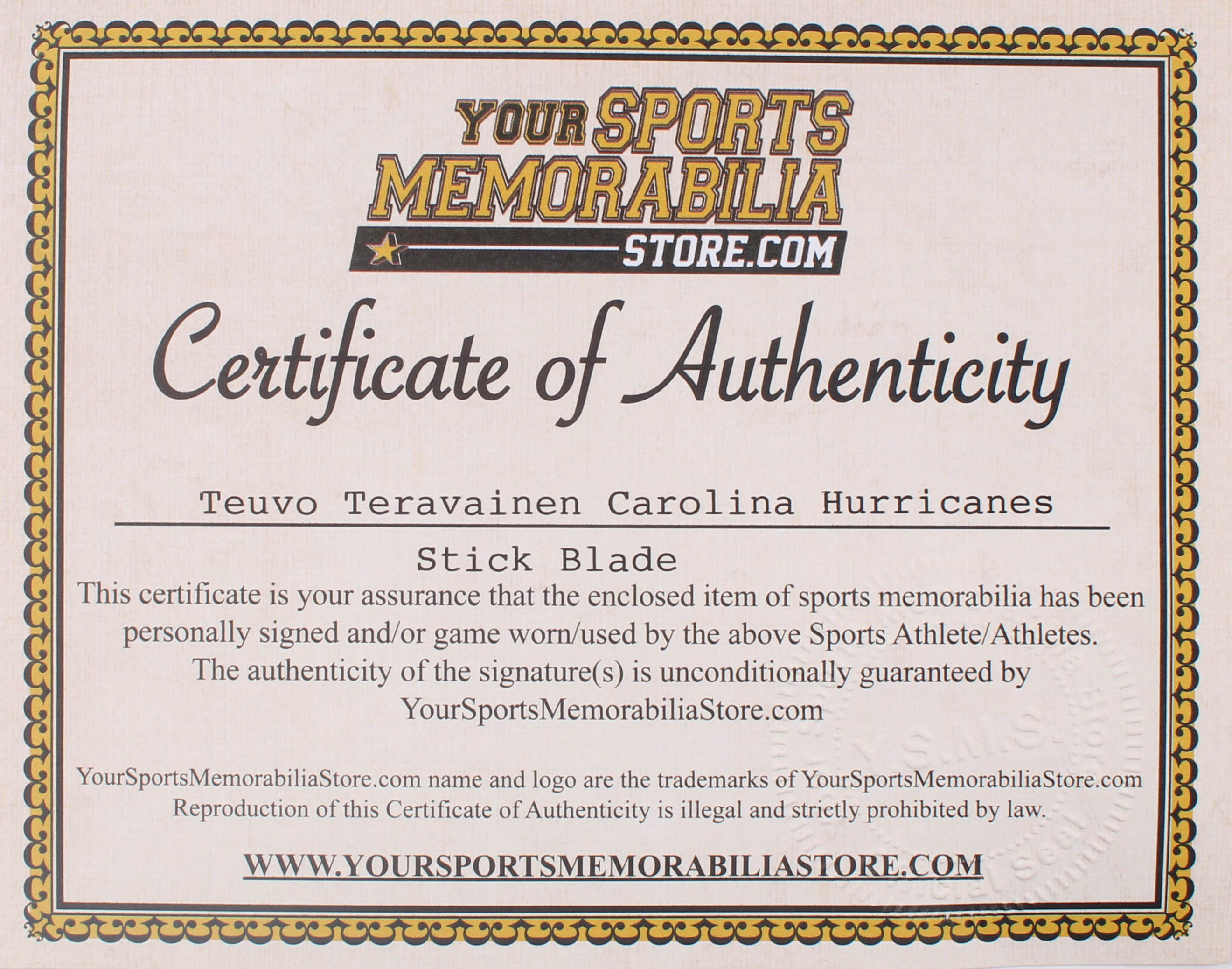 The lot / autograph(s) includes an official Your Sports Memorabilia Store Teuvo Teravainen hologram and COA for authenticity purposes.