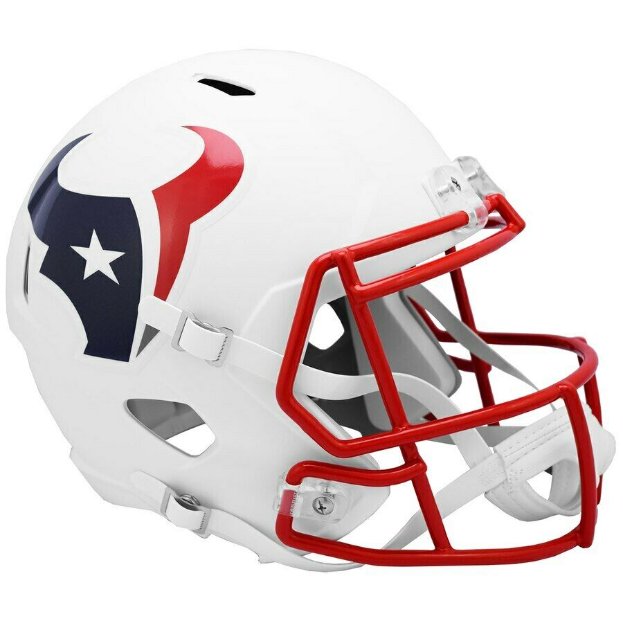 This is a brand new Riddell Houston Texans flat white matte revolution speed full size replica helmet. This helmet is ready to be autographed by your favorite player or display as part of your collection.