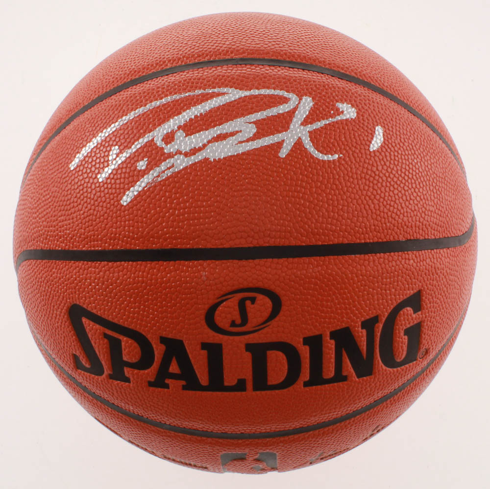 Spalding NBA Game Ball Series basketball. Hand-signed in silver paint pen by Devin Booker (Phoenix Suns).
