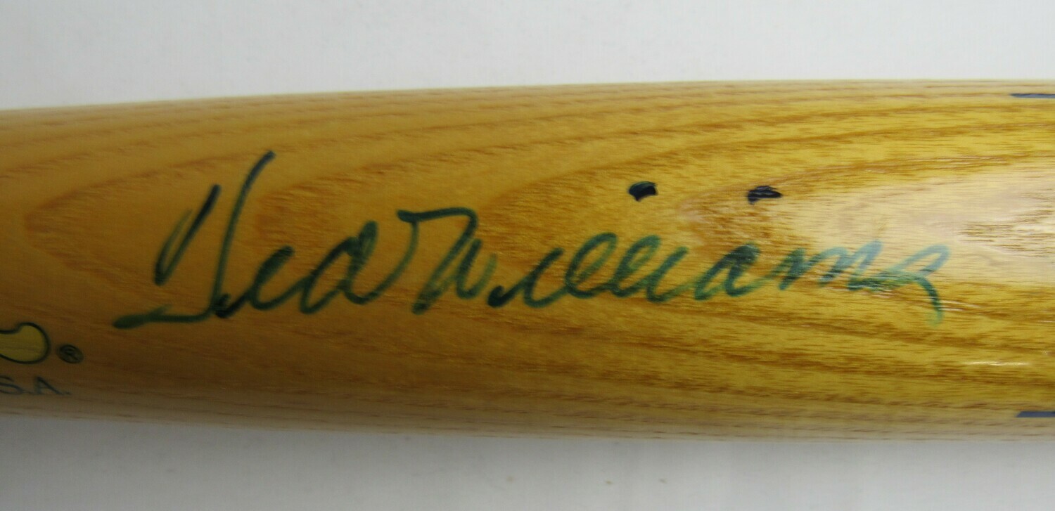 Cooperstown Williams Commemorative baseball bat. Hand-signed in blue felt-tip pen by Ted Williams (D. 2002, Boston Red Sox, HOF).