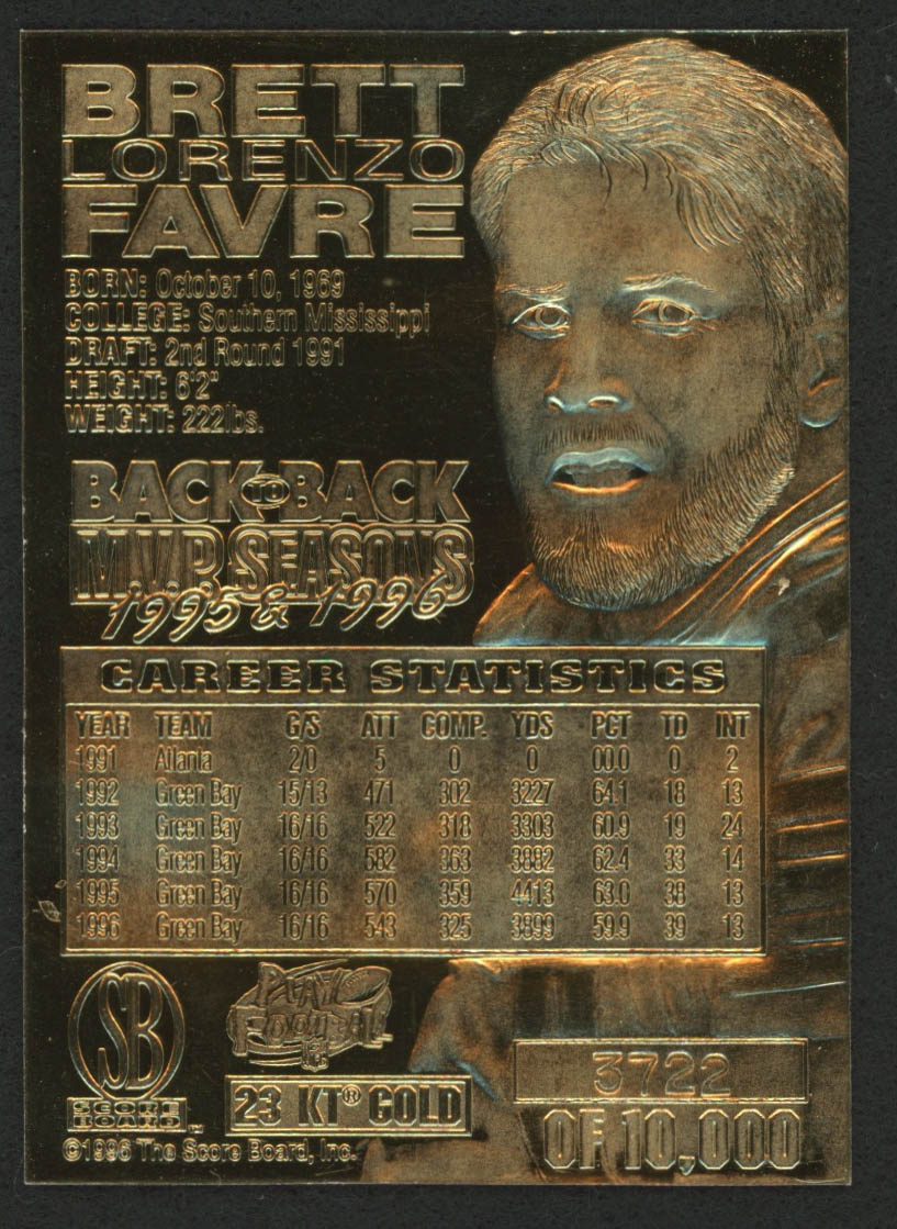 Brett Favre 1996 Score Board 23KT Gold Football Card