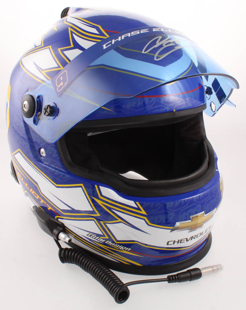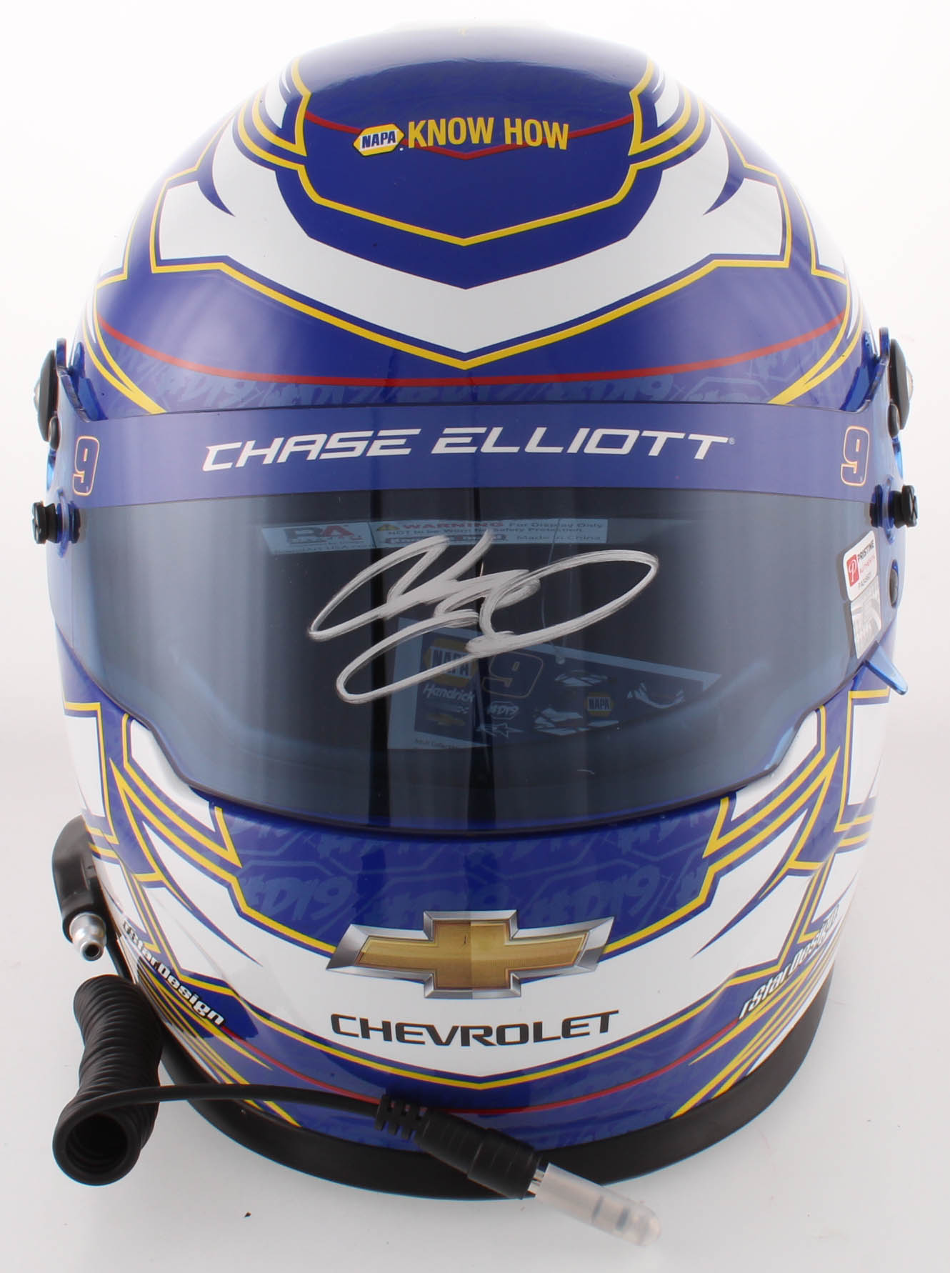 Full-size replica NASCAR helmet hand-signed on the visor by Chase Elliott.