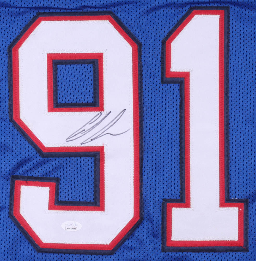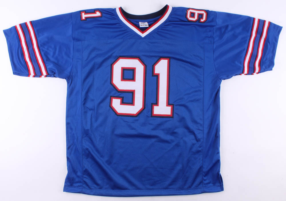 Custom on-field style jersey. Everything sewn on, size XL. Hand-signed in black felt-tip pen by Ed Oliver.