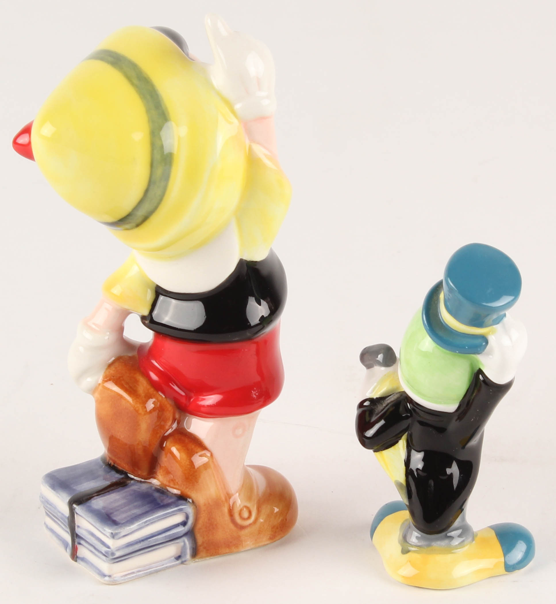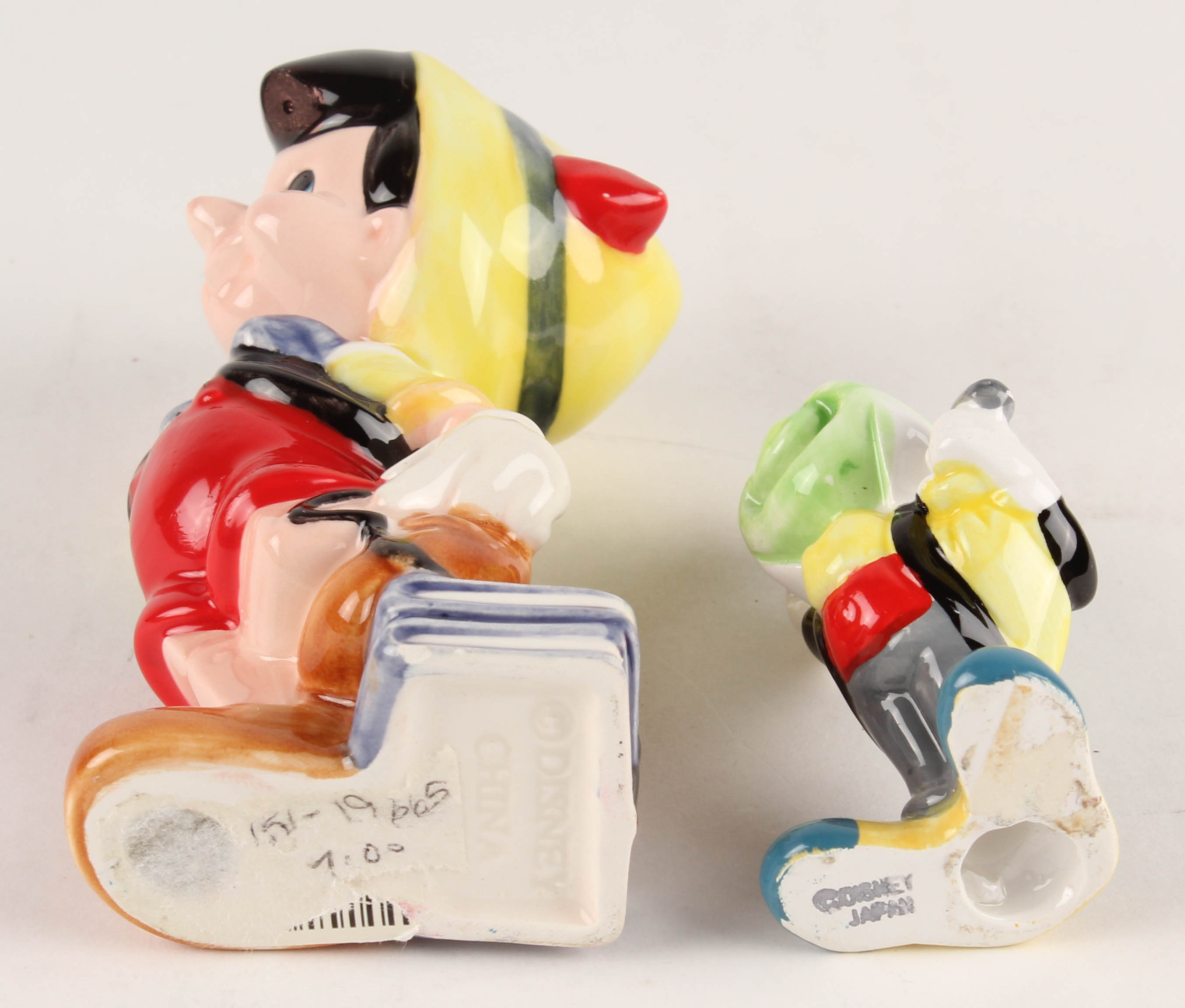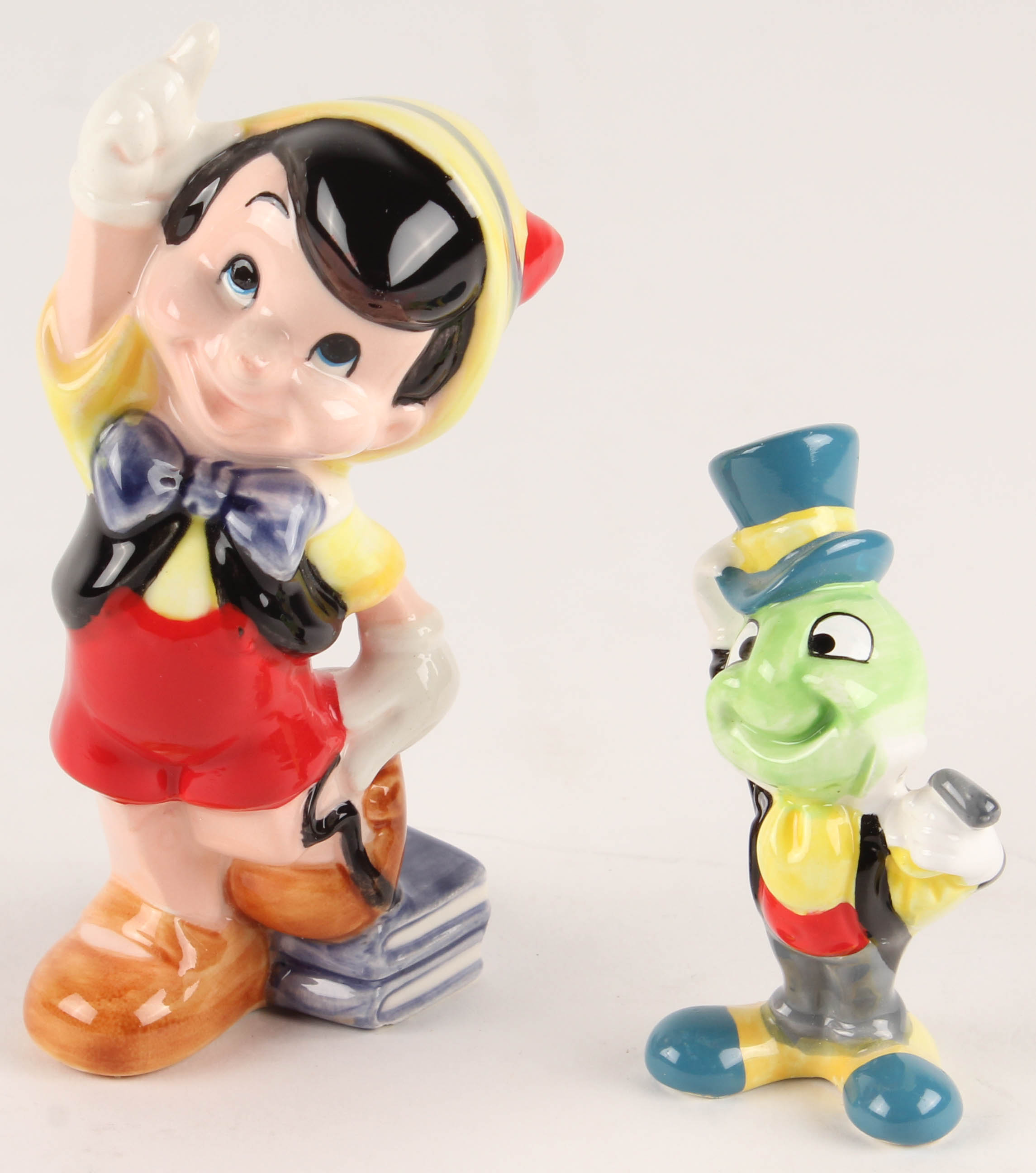 Vintage Disney Pinocchio and Jiminy Cricket Ceramic Set. Pinocchio figurine measures 4" in height. Jiminy Cricket figurine measures 3" in height. Please see photos for details regarding the condition of the ceramics.