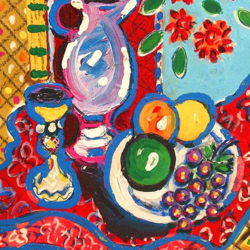 "Still Life with Pitcher" is an original Mixed Media on Board by Wayne Ensrud. The piece is hand signed by the artist and comes with a Certificate of Authenticity. Measures approximately 24" x 19".