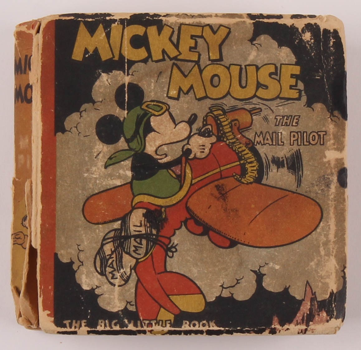 1933 Walt Disney's "Mickey Mouse The Mail Pilot" hardcover book measures 3.75" x 4.5" in size. Please see photos for more details regarding the condition of the book. Please note the book is unsigned.