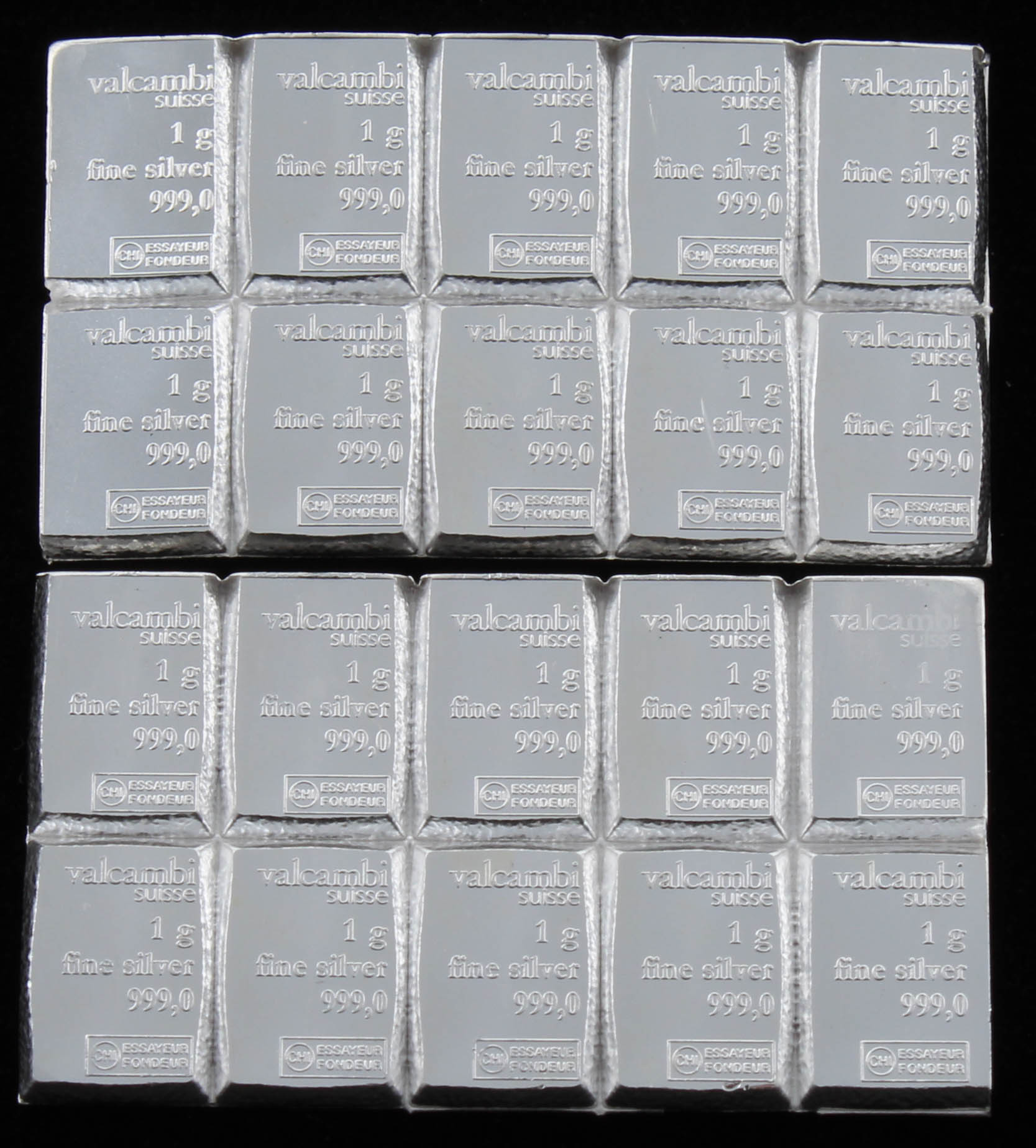 Lot of (20) 1 Gram Silver Valcambi Mint Bullion Bars