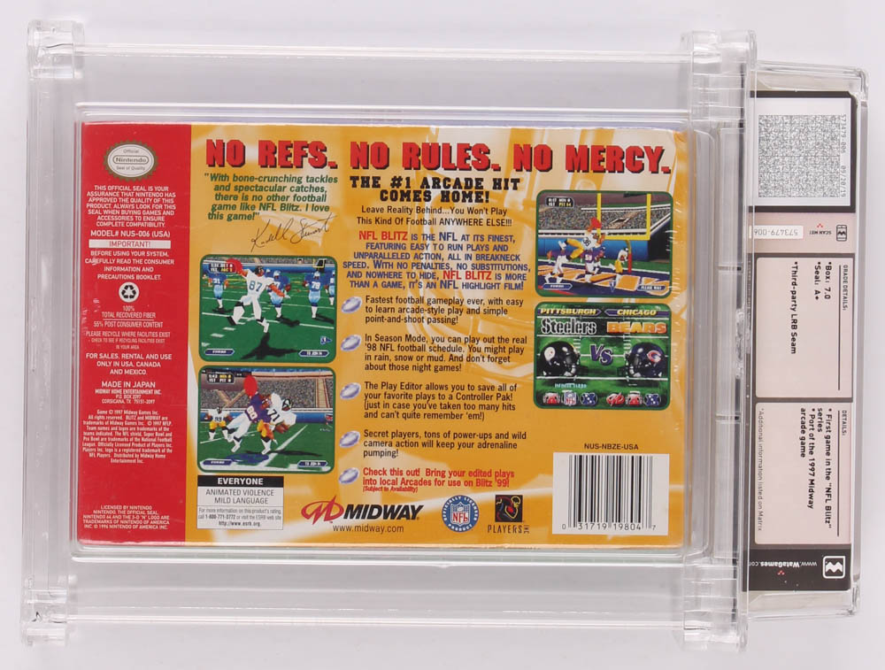 1997 "NFL Blitz" Nintendo Video Game has been graded (Wata Certified) 7.0. Please see photos for more details regarding the condition of the game.