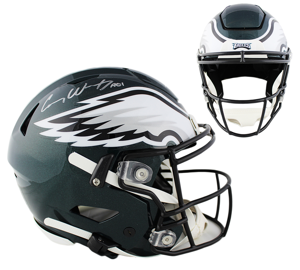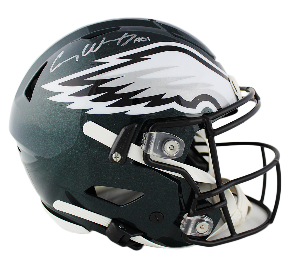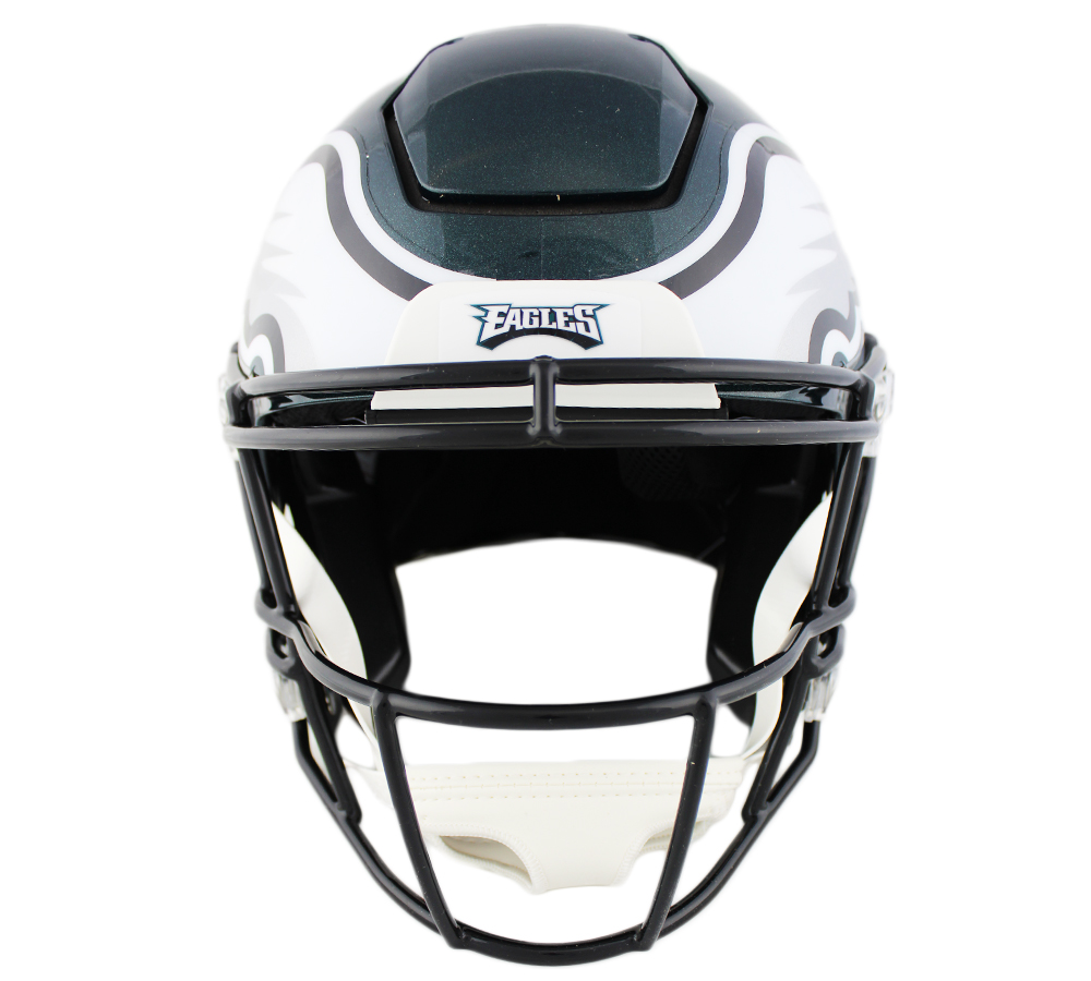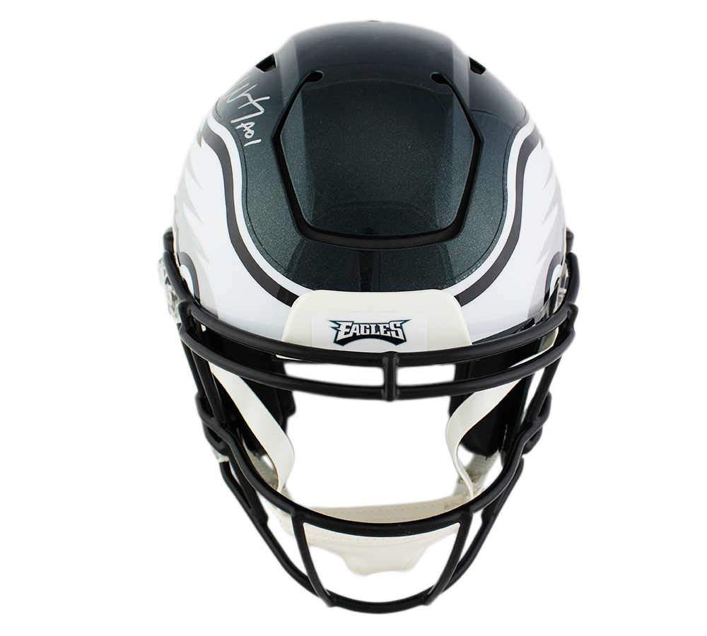 Riddell Philadelphia Eagles full-size authentic on-field SpeedFlex helmet has been hand-signed and inscribed in silver paint pen by Carson Wentz.
