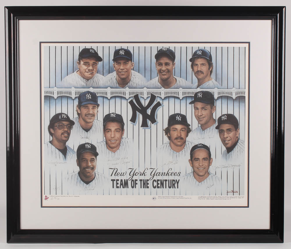 Yankees LE "Team of the Century" 33.5x39.5 Custom Framed Lithograph Display Signed by (8) with Joe DiMaggio Inscribed "Yankee Clipper", Reggie Jackson, Phil Rizzuto, Dave Winfield, Yogi Berra, Jim "Catfish" Hunter (JSA ALOA)