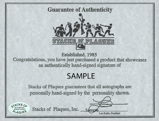 The lot / autograph(s) includes an official Stacks of Plaques hologram and matching COA for authenticity purposes. Est. 1985, celebrating 30 plus years in the business.