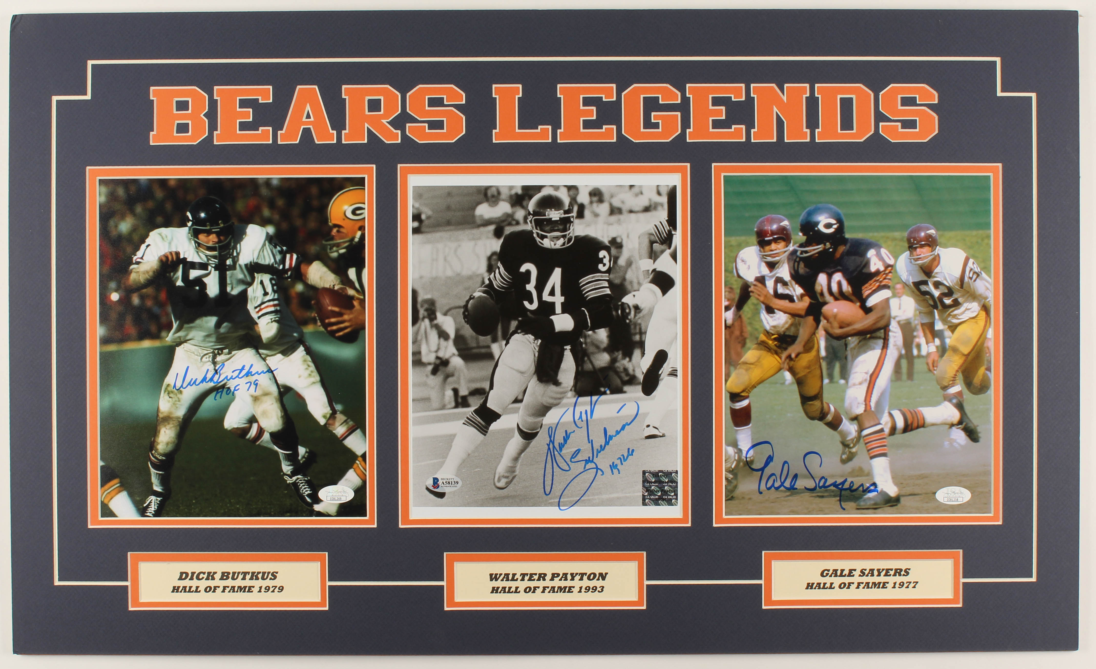 Dick Butkus, Walter Payton & Gale Sayers Signed "Bears Legends" 18x30 Custom Matted (3) 8x10 Photos Display with Multiple Inscriptions (Beckett LOA & JSA COA)