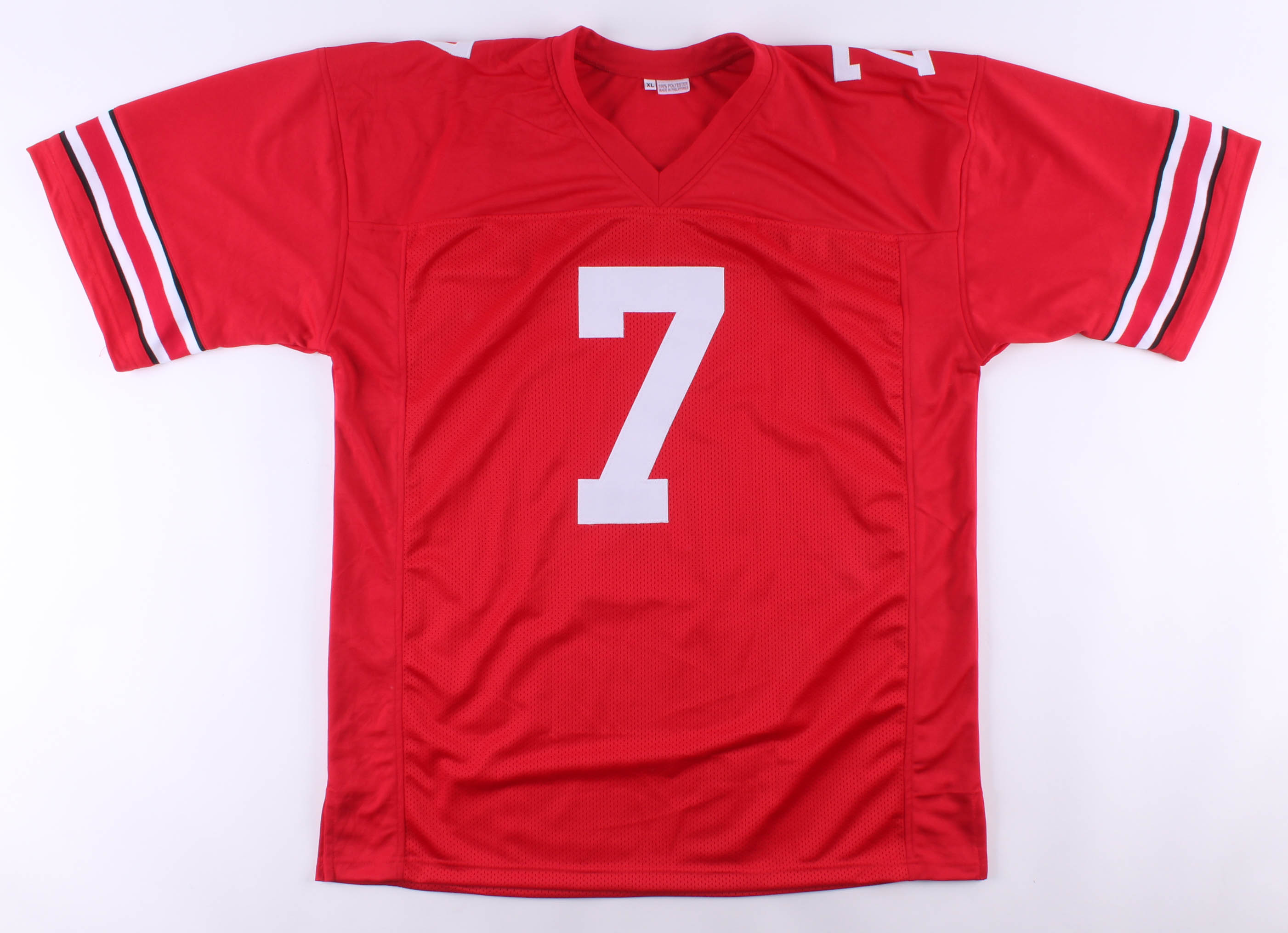 Custom on-field style jersey. Everything is sewn on, size XL. Has been hand-signed in black felt-tip pen by Dwayne Haskins.