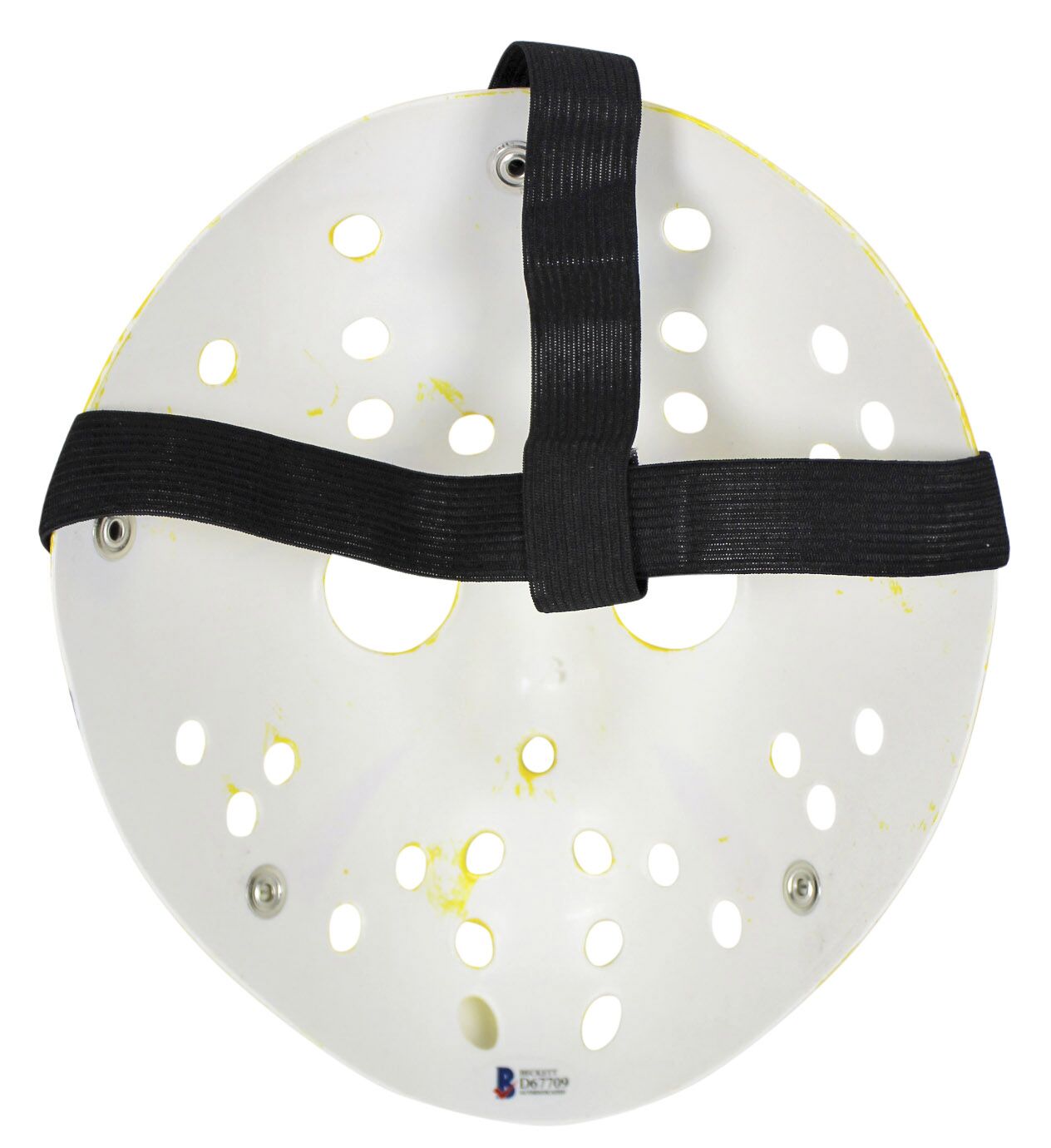 Replica "Friday the 13th" Jason Voorhees mask. Hand-signed and inscribed in black felt-tip pen by Ari Lehman.
