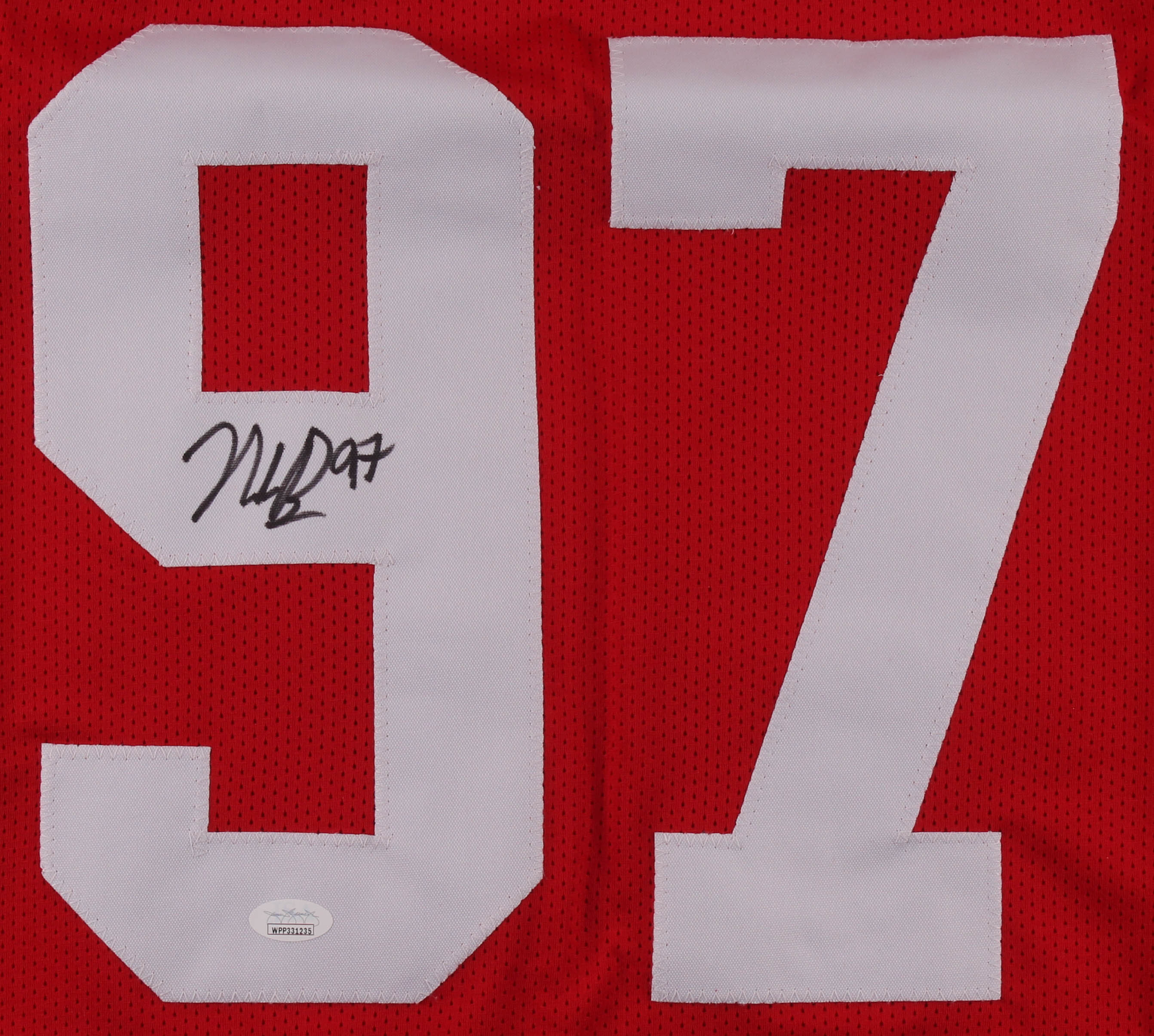 Nick Bosa Signed Career Highlight Stat Jersey (JSA COA)
