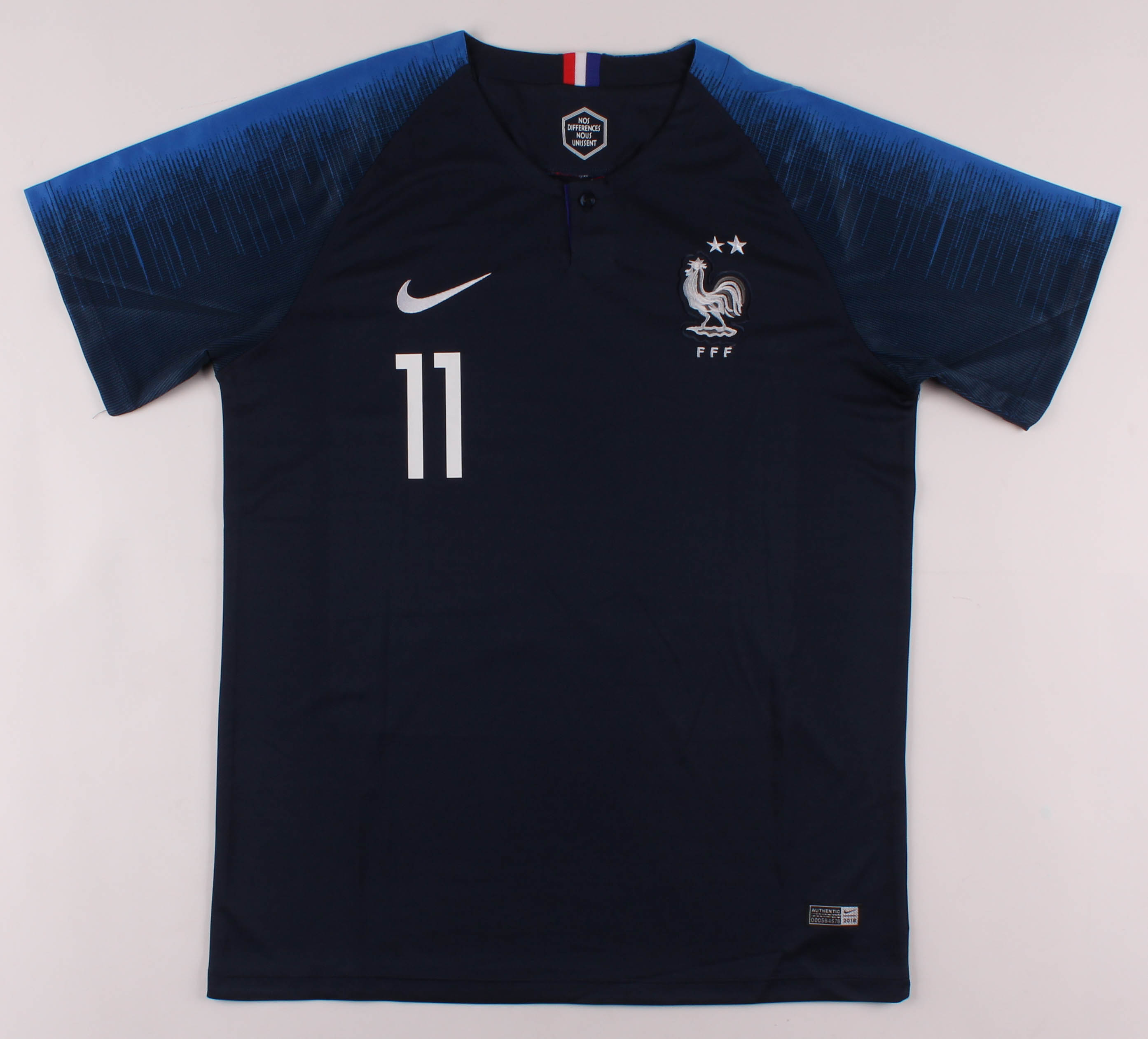 Nike on-field style jersey. Everything is printed on, size L. Has been hand-signed in black felt-tip pen by Ousmane Dembele.