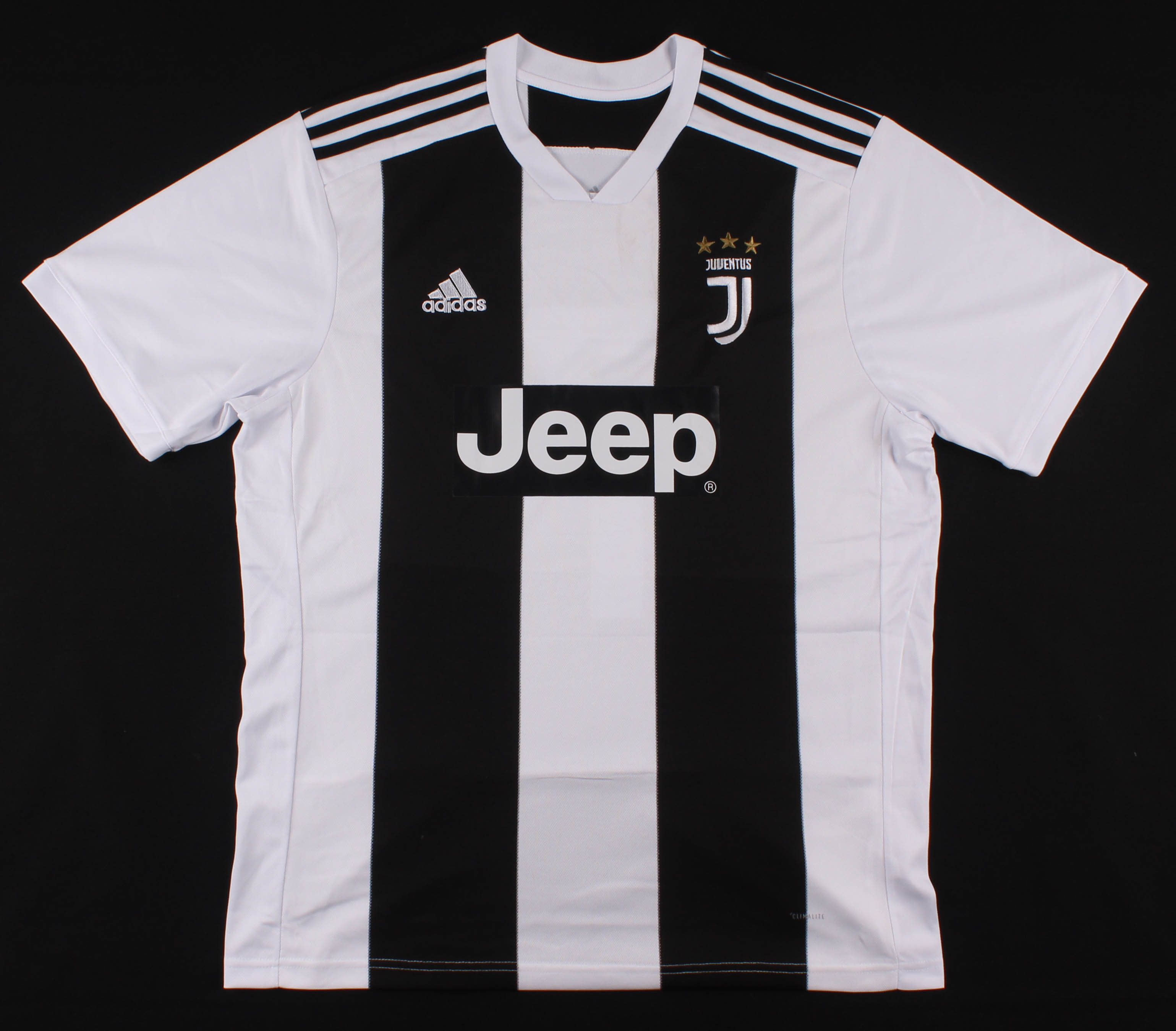 Adidas on-field style jersey. Everything is printed on, size XL. Has been hand-signed in silver paint pen by Cristiano Ronaldo.