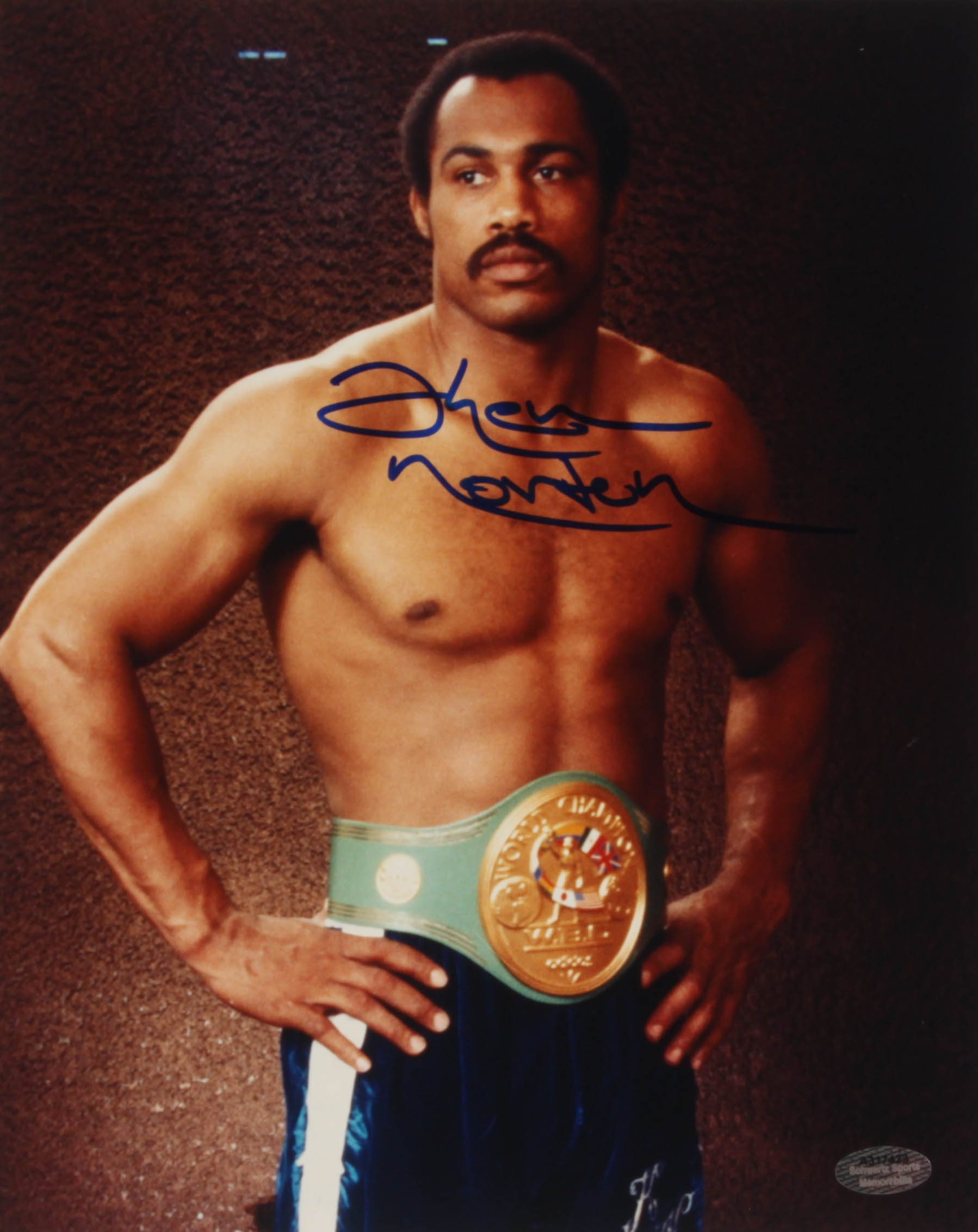 Photo measures 8" x 10" in size and has been hand-signed in blue felt-tip pen by Ken Norton (D. 2013).