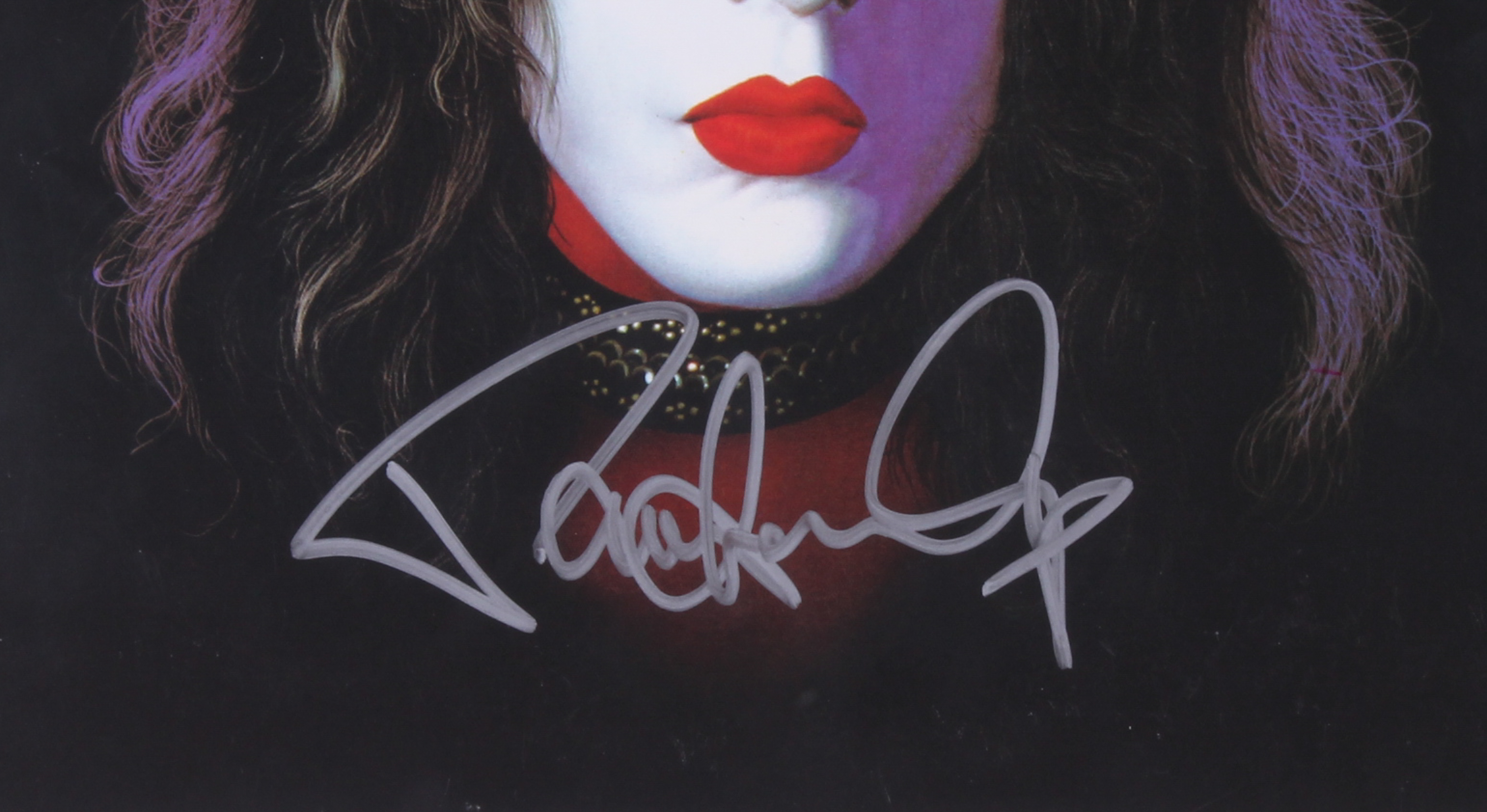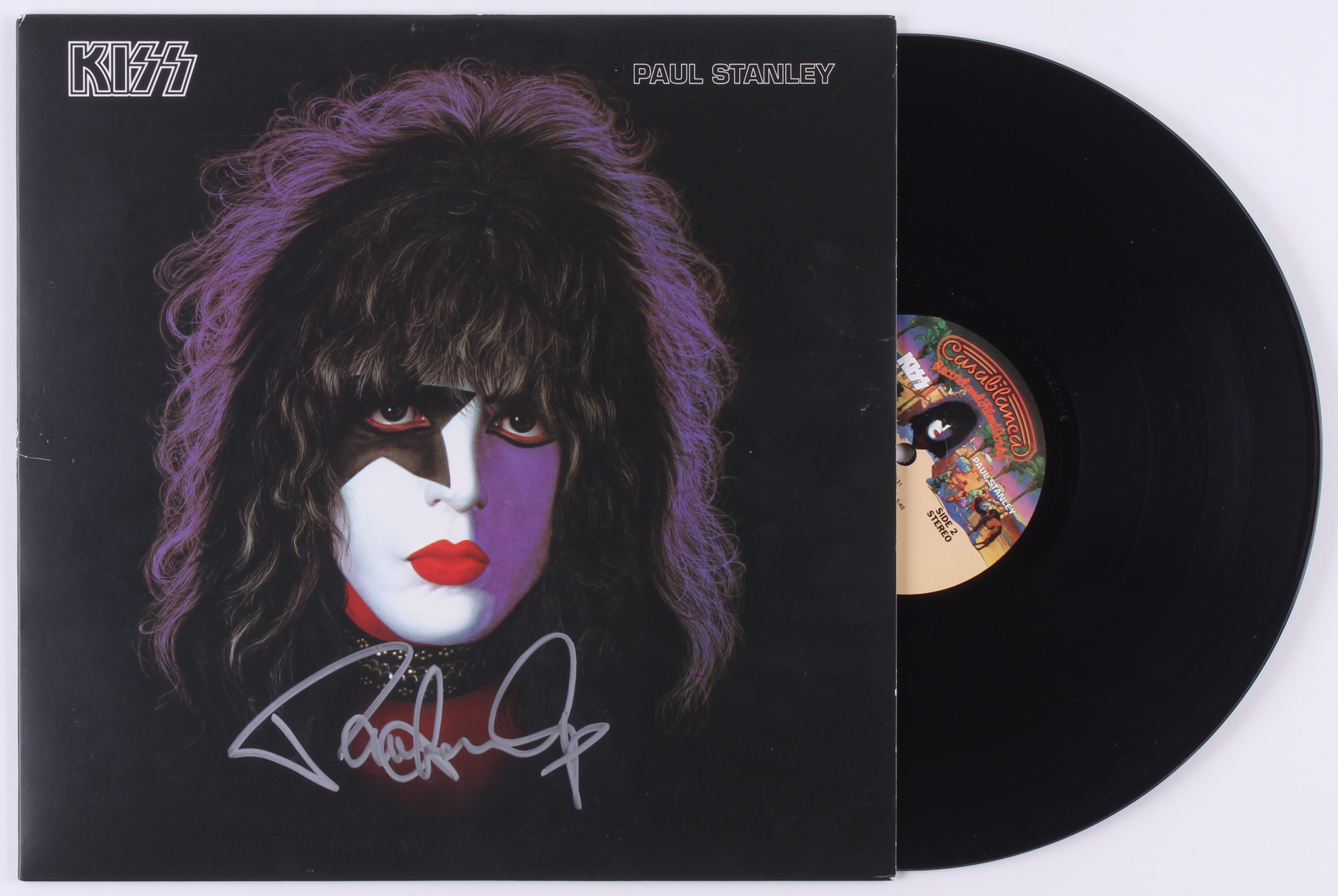 "Kiss" vinyl record album cover has been hand-signed in silver paint pen by Paul Stanley. Please note, the vinyl is included in the auction.