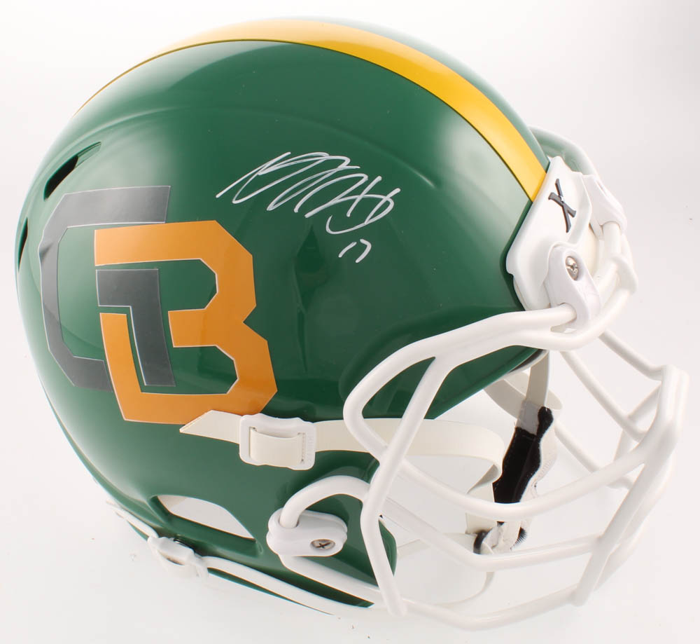 Xenith Green Bay Packers full-size replica helmet, size Youth Large. Hand-signed in white paint pen by Davante Adams.