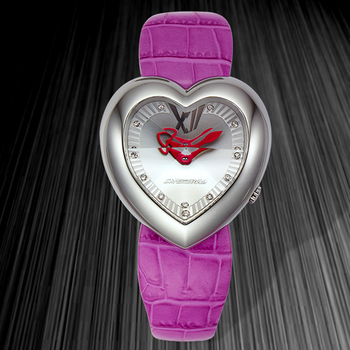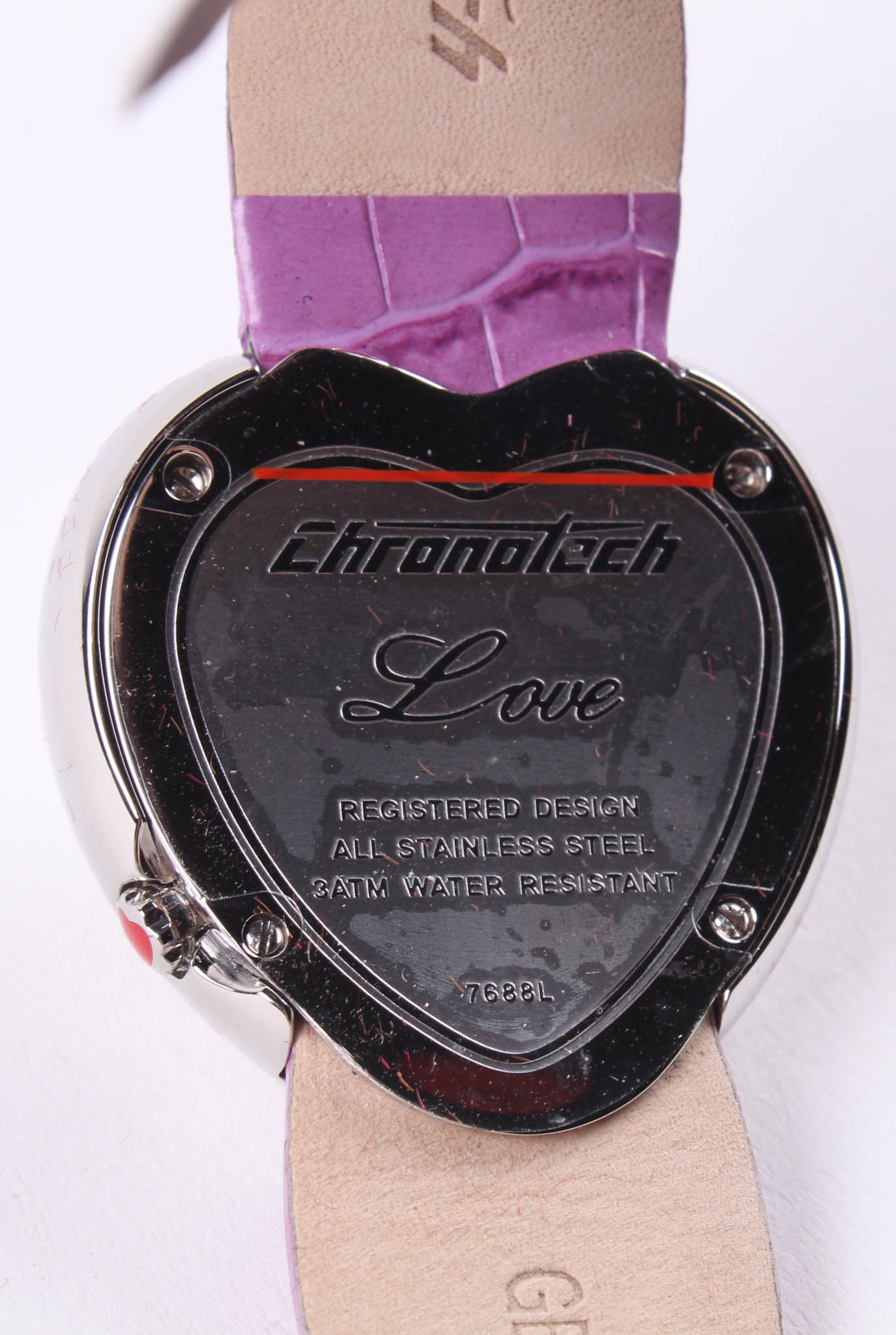 The Chronotech Ladies Heart Watch features a silver face and purple alligator print strap. Please see photos for details.