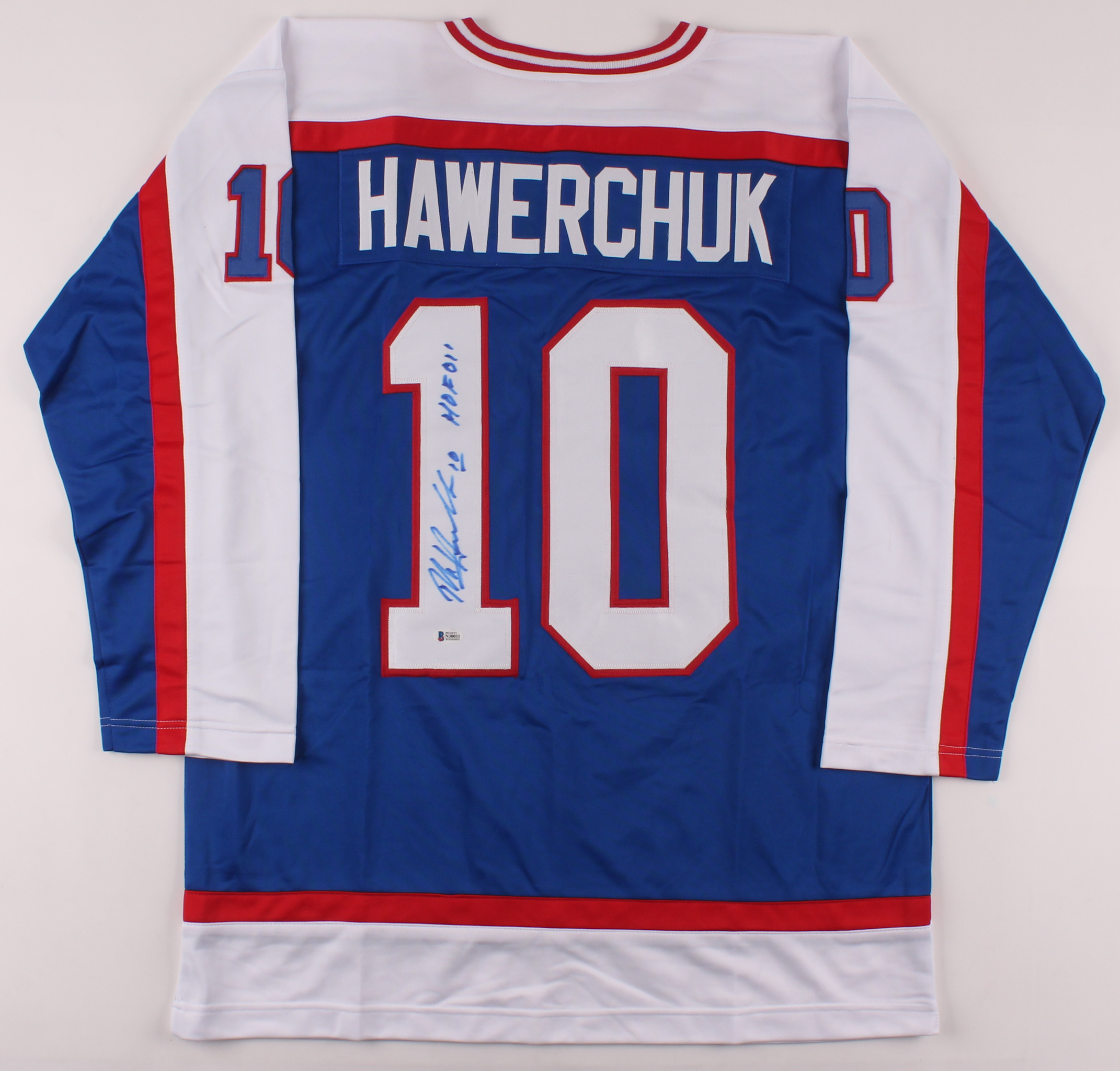 Dale Hawerchuk Signed Jersey Inscribed "HOF 01" (Beckett COA)