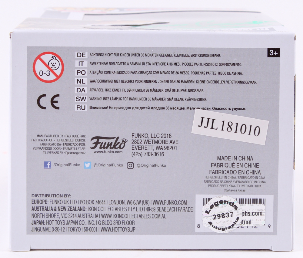 Funko Pop! figure measures approximately 4" in height and has been hand-signed and inscribed on the packaging in green paint pen by Mark Dodson.