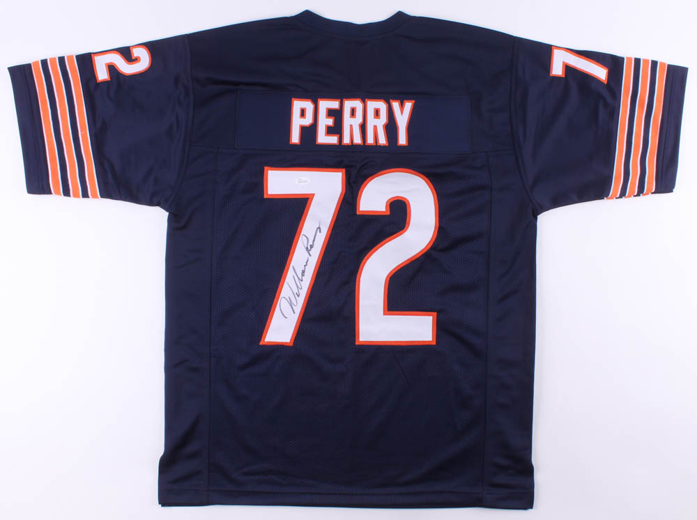 Custom on-field style jersey. Everything is sewn on, size XL. Hand-signed in black felt tip pen by William Perry.
