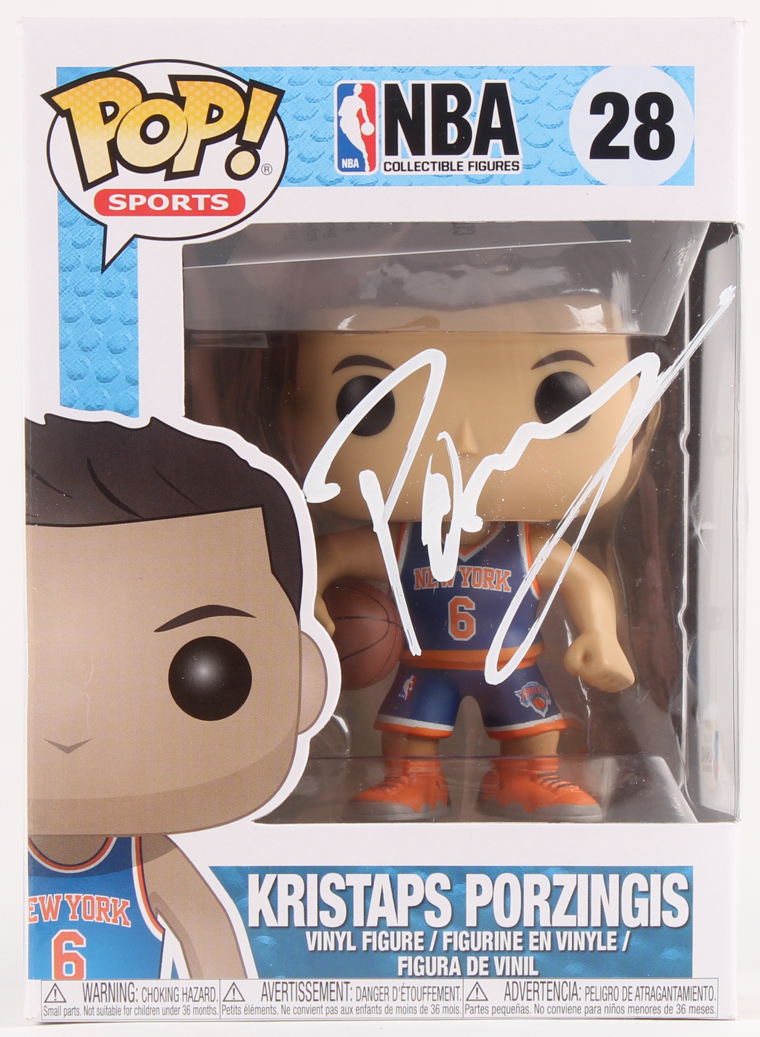 Funko Pop! vinyl figure measures approximately 4" in height. Hand-signed in white paint pen by Kristaps Porzingis (New York Knicks).