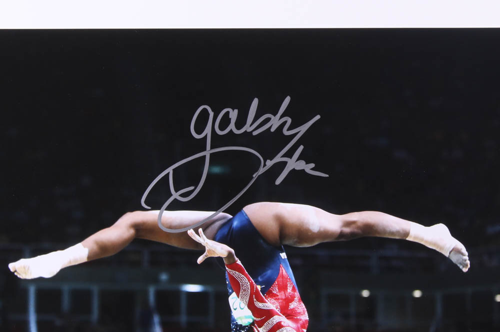 Photo measures 16" x 20" in size and has been hand-signed in silver paint pen by Gabby Douglas.