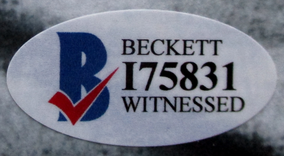 The lot / autograph(s) includes an official Beckett Authentication Services serially numbered hologram and matching COA for authenticity purposes. The signing of this item was witnessed by Beckett