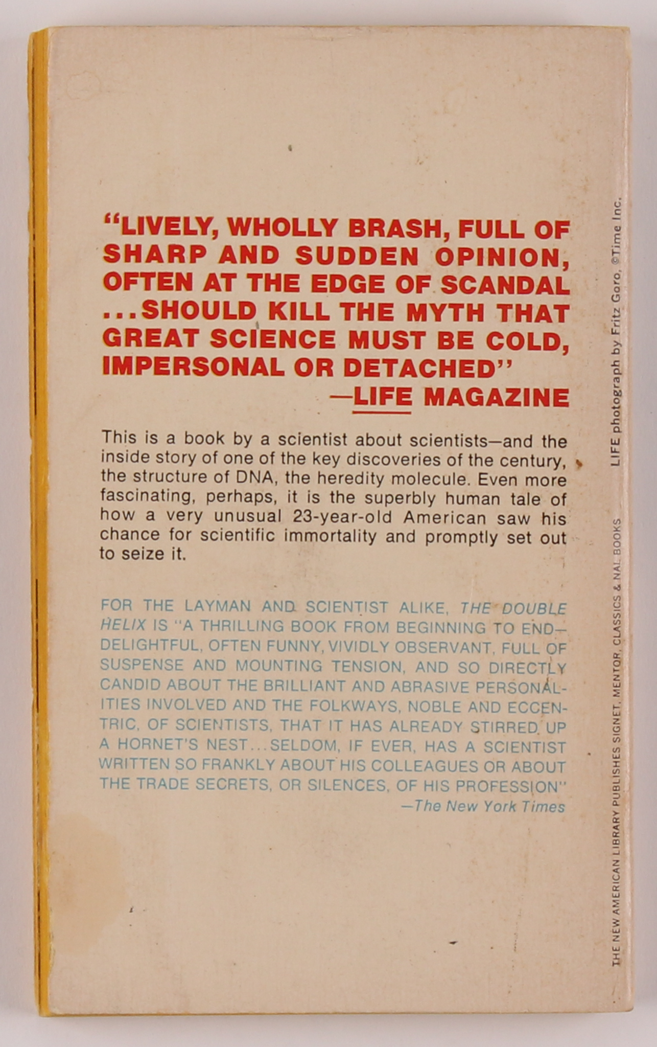 "The Double Helix: A Personal Account of the Discovery of the Structure of DNA" softcover book has been hand-signed in black ink pen on the inside title page by James Watson. Please see images for details regarding the condition of the book.