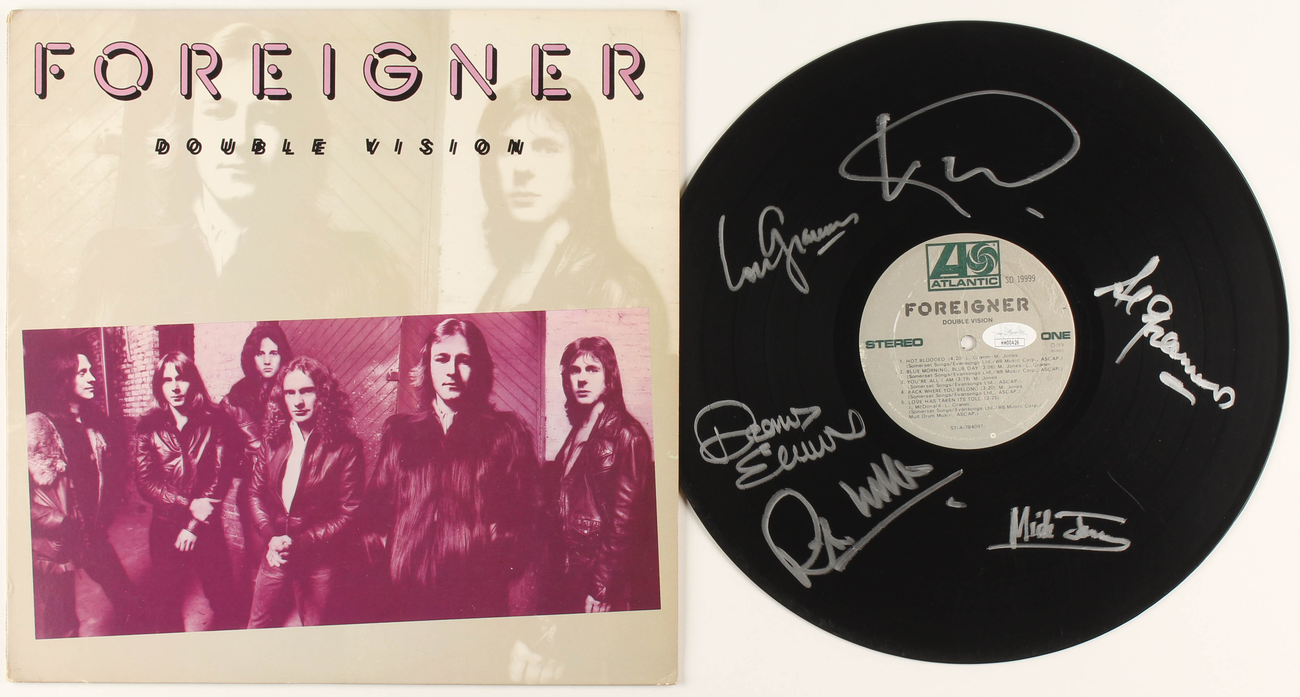 Foreigner "Double Vision" Vinyl Record Album Signed by (6) with Lou Gramm, Mick Jones, Ian McDonald, Al Greenwood, Dennis Elliott & Rick Wills (JSA COA)