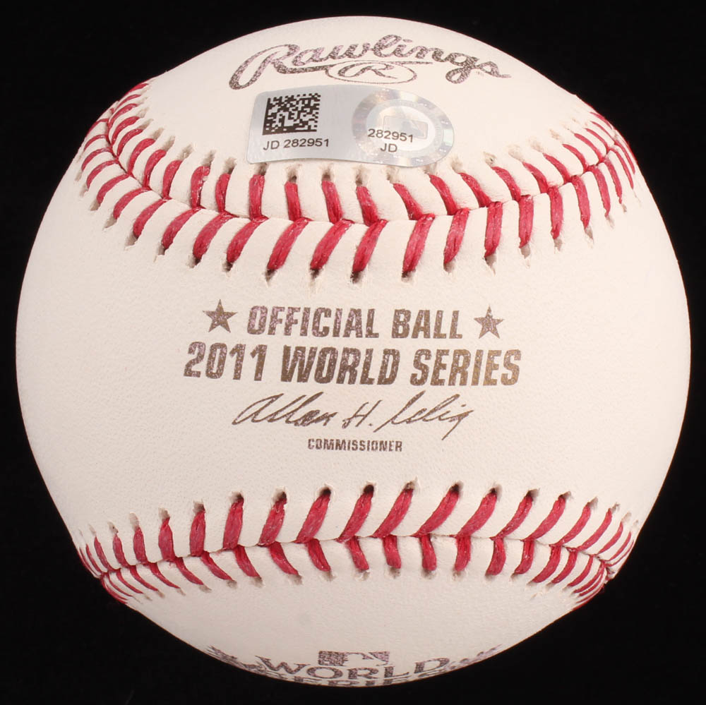 Rawlings Official 2011 World Series Baseball has been hand-signed in blue ink by Yadier Molina (St. Louis Cardinals).